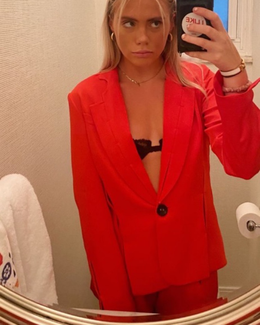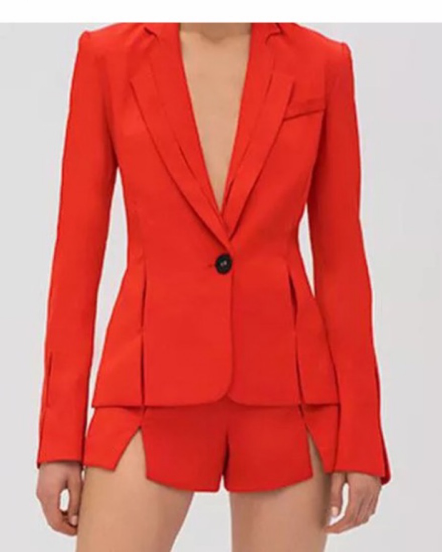 Silk red shorts and blazer set from Alexis. Actually my favorite outfit ever!! I wear either with a bralette or on its own with tape!