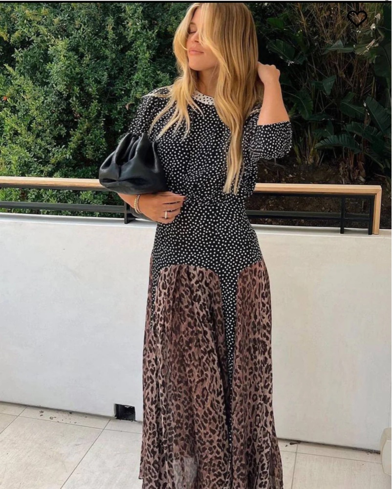 RIXO Polka Dot and Leopard Maxi Dress