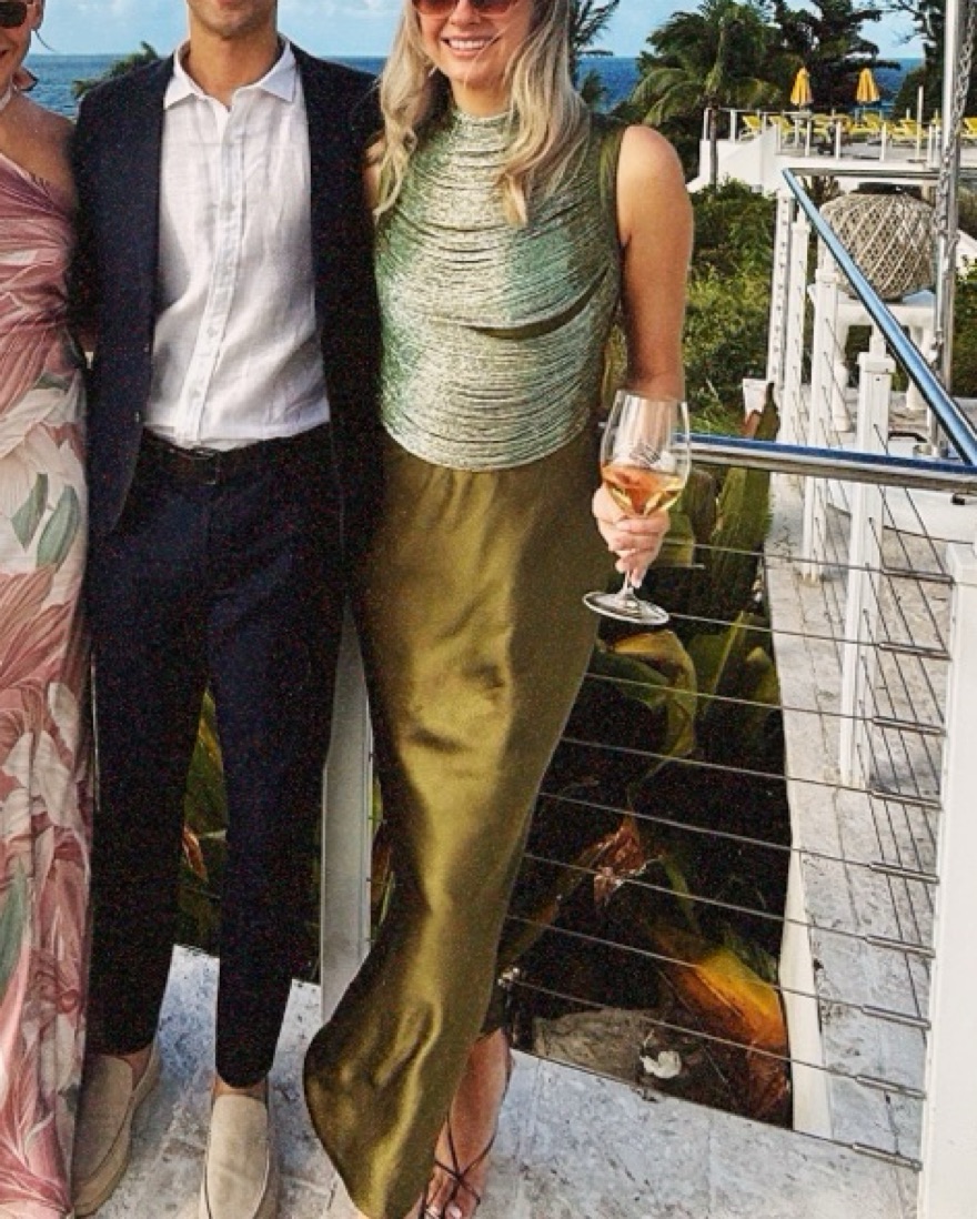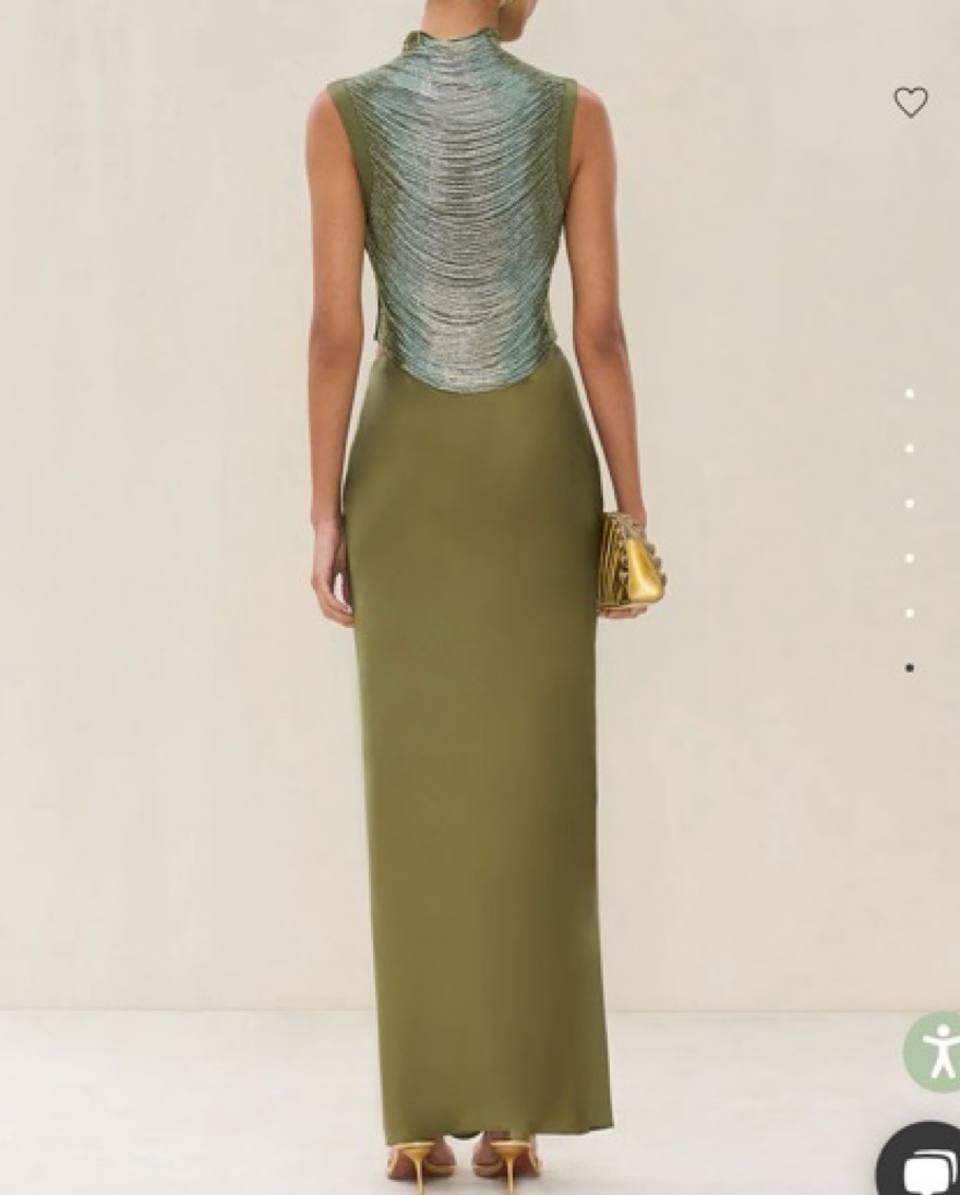 Hand beaded blue and green ombré high neck top and separate green maxi slip skirt