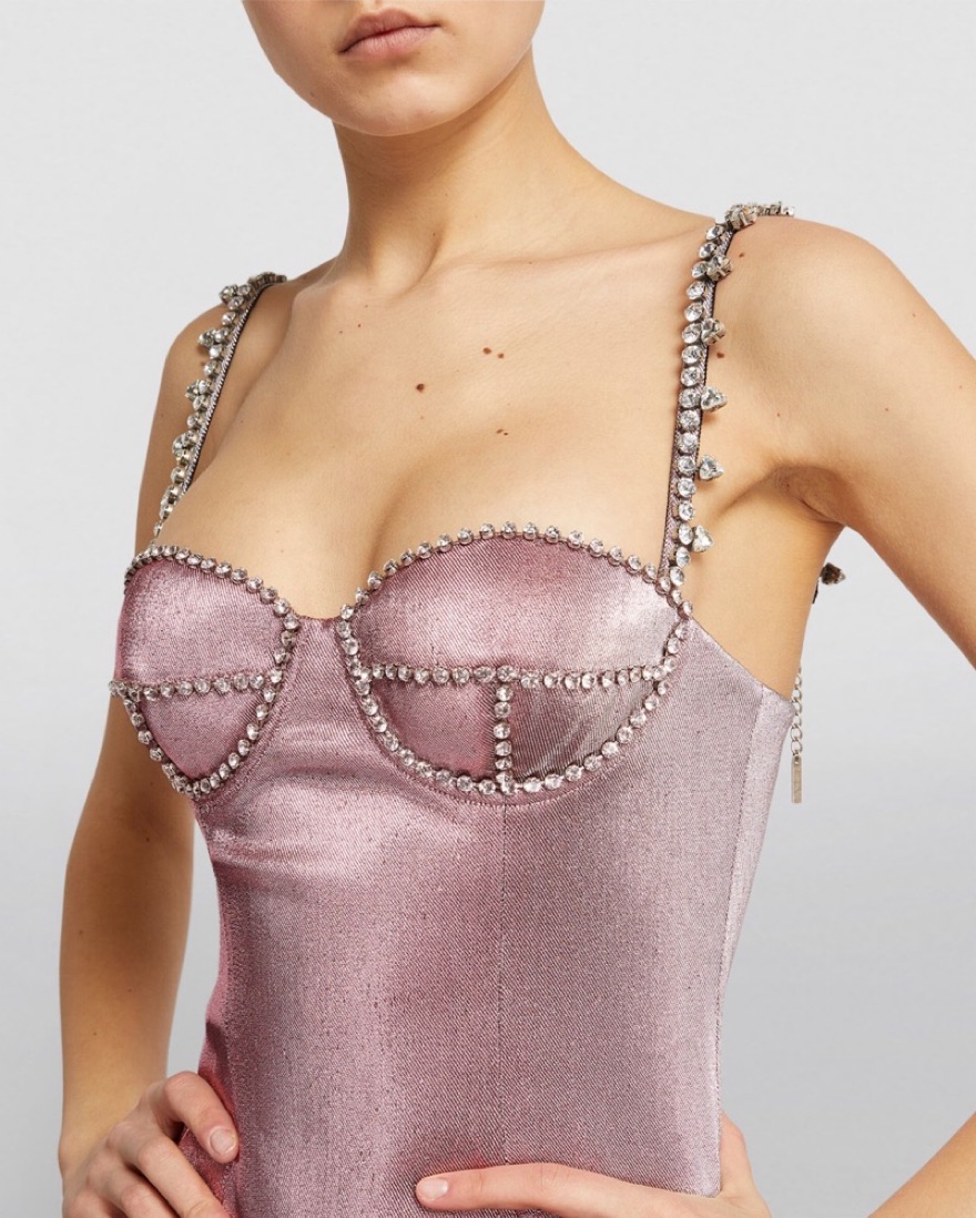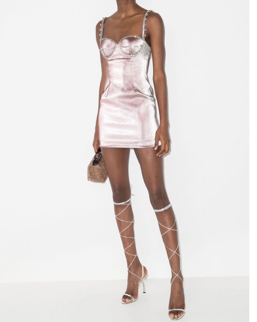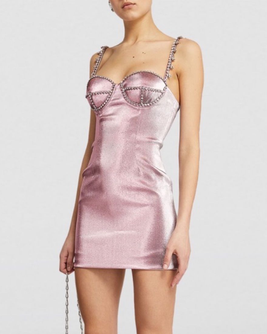 Fits like 0, no size tag. This pink AREA crystal spike mini dress is crafted for a slim fit. The sleeveless design features sparkling embellished shoulder straps, crystal detailing across the bust, silver tone hardware, a sweetheart neckline, rear zip fastening and straight hem.