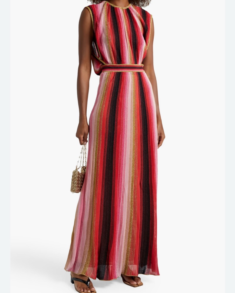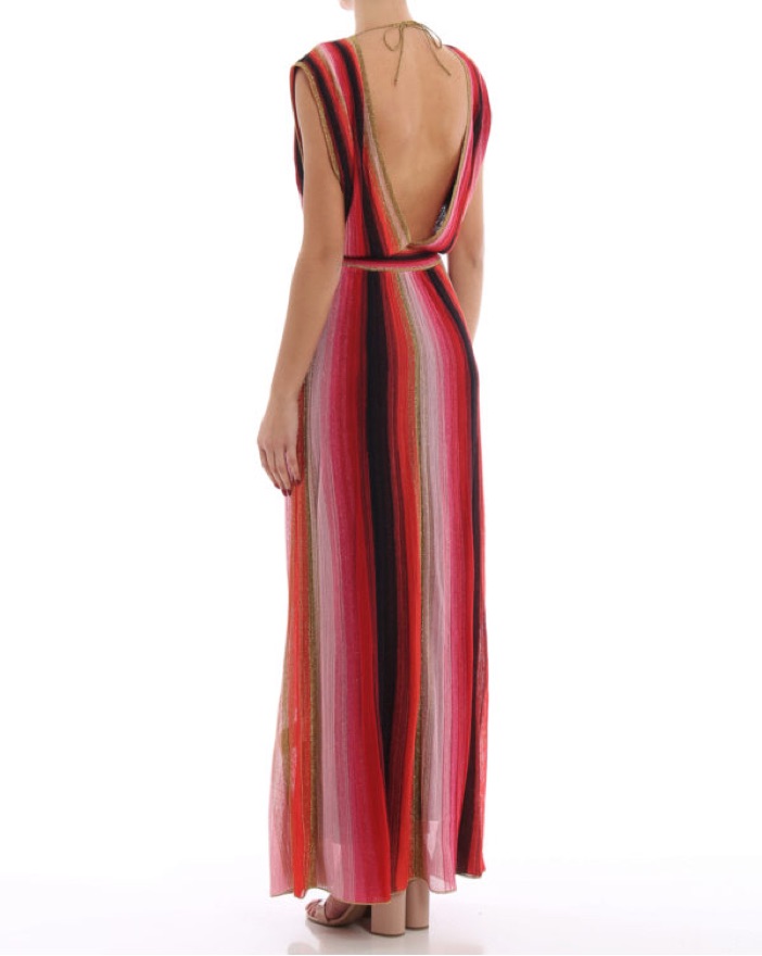Perfect for your European holiday. This versatile Missoni gown it it’s iconic chevron print will wow any audience anywhere. Worn here backwards (front is high neck)