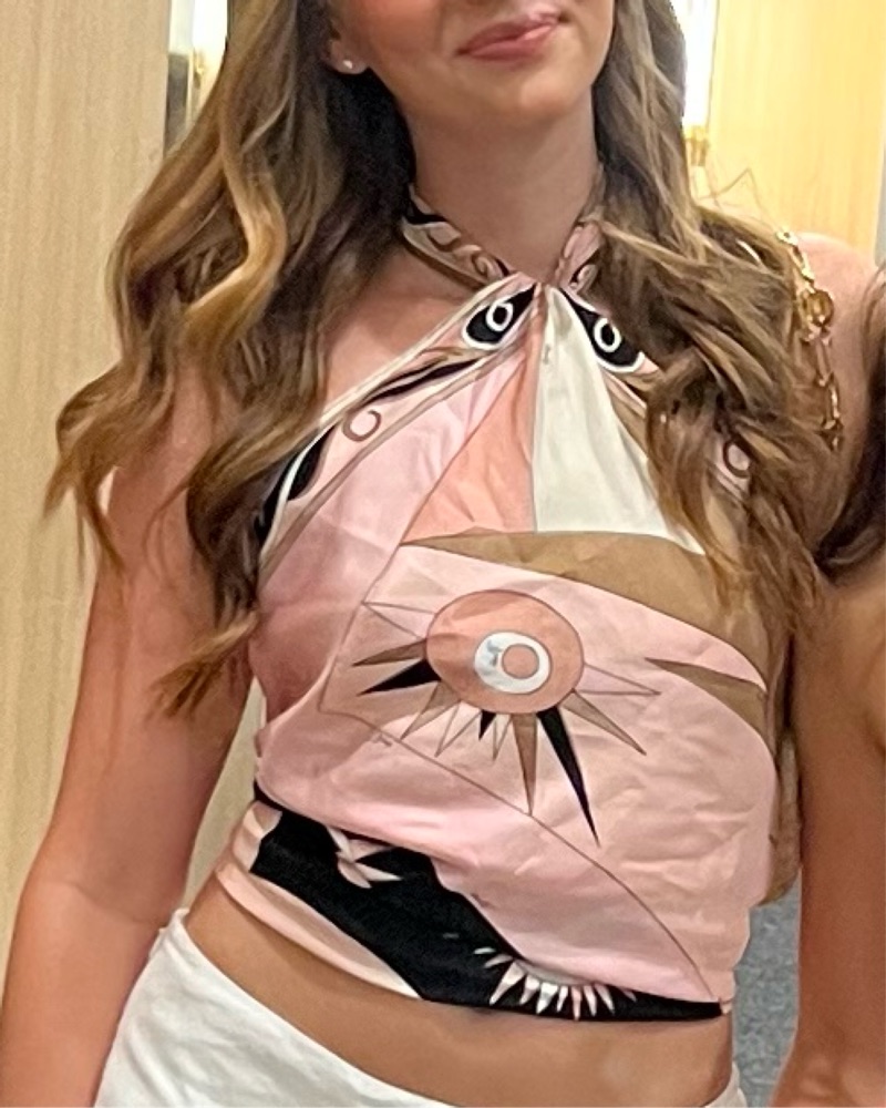 Pucci scarf and twilly tied together to make the perfect halter! Comes with both, the strings from the twilly have the logo which hangs in the back!