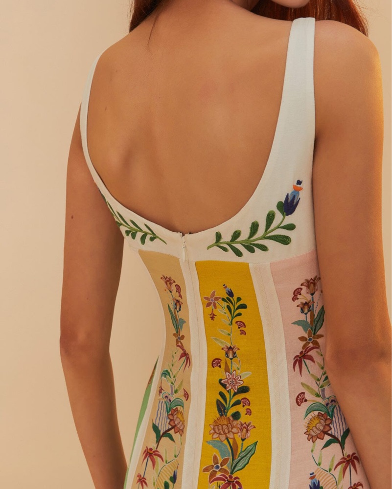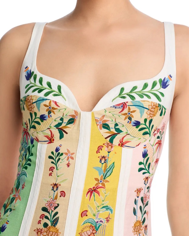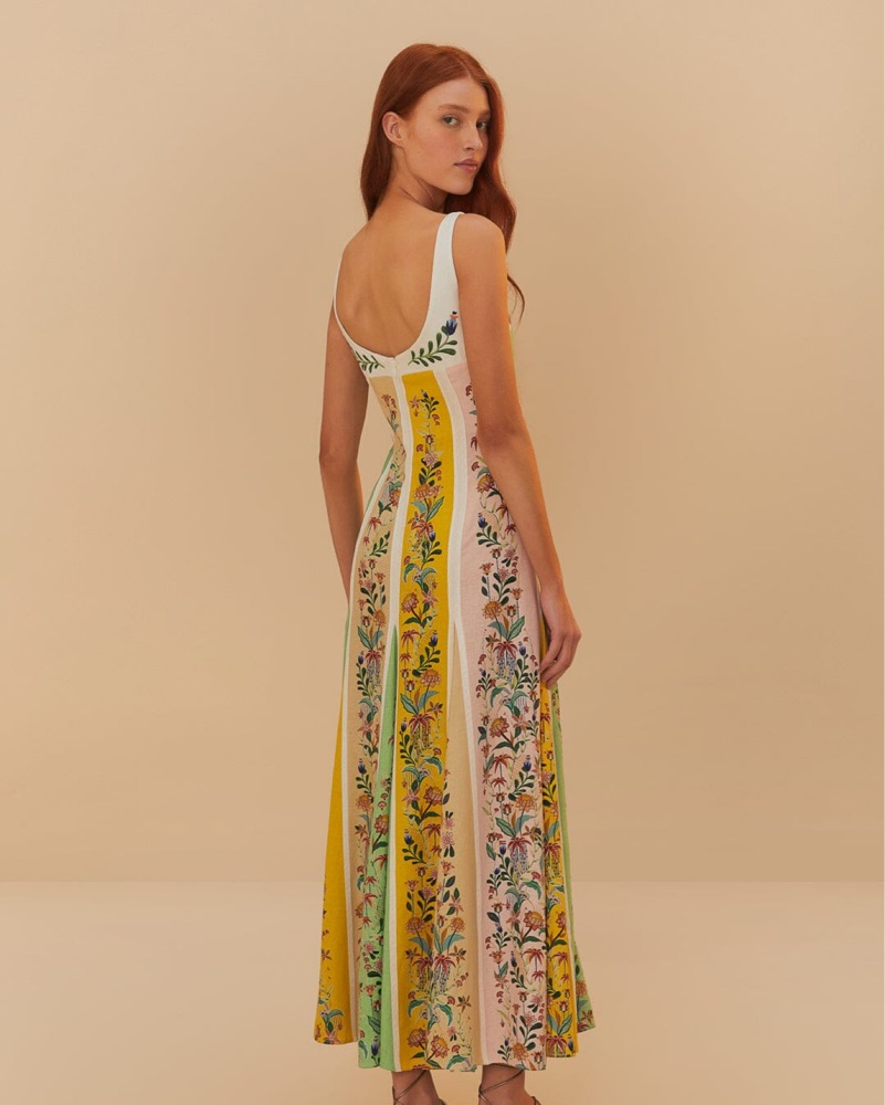 Delicate Floral Striped Dress Farm Rio by Farm Rio - Pickle