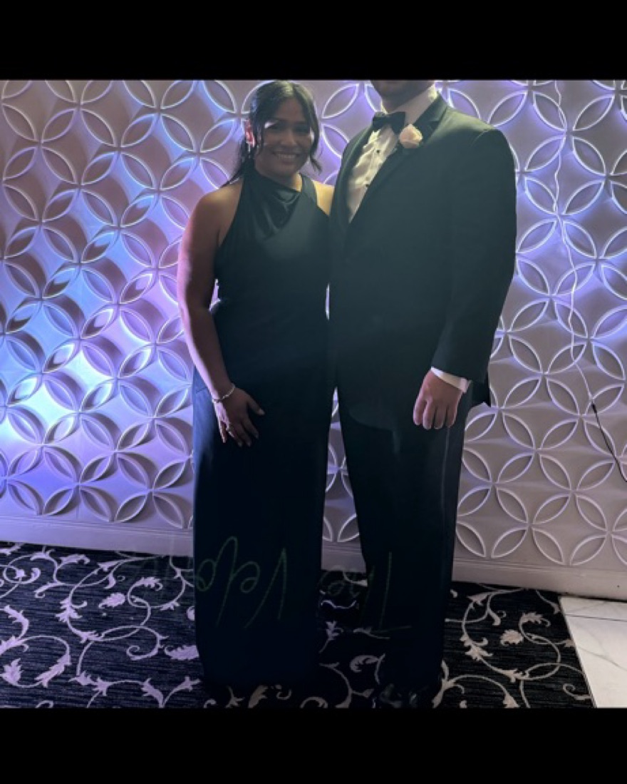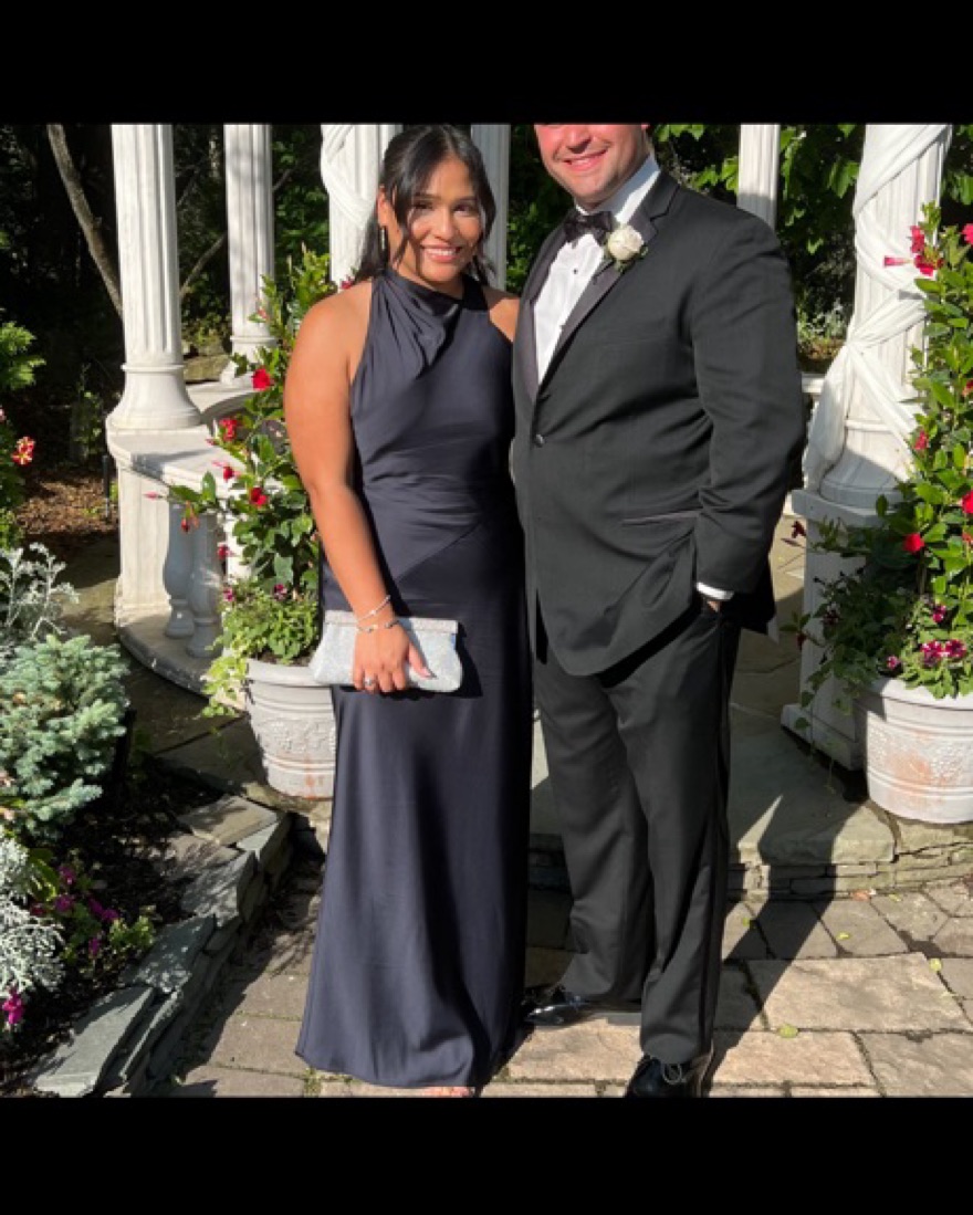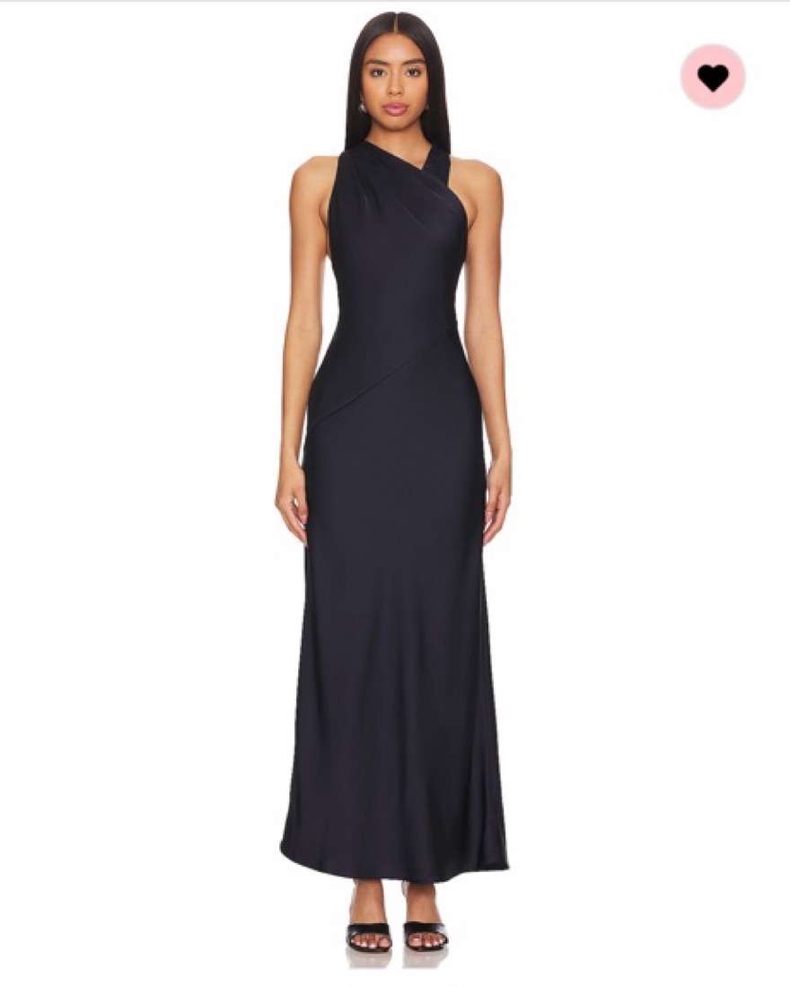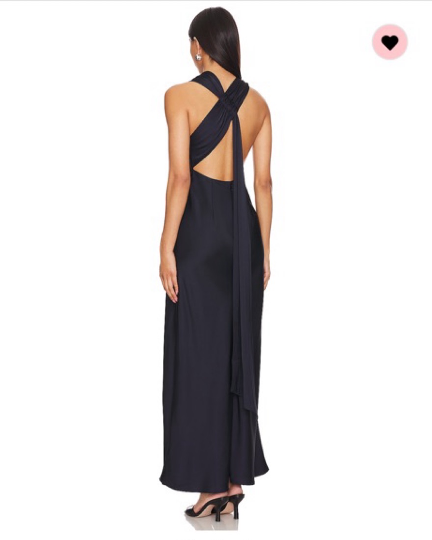 Color: midnight (very very dark navy.) Dress is a size 8 but its been tailored so fits more like a 6. Kept original hem length so its a full gown length on me!