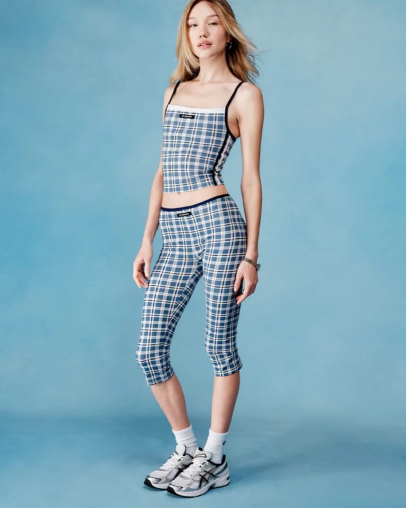 Dairy Boy Sport Wag Capri in Greenwich Plaid Aero Performance fabric, a lightweight cotton blend with a cool, dry feel and just the right amount of stretch. Designed with a mid-rise, close fit and a skinny capri leg that hits just below the knee.