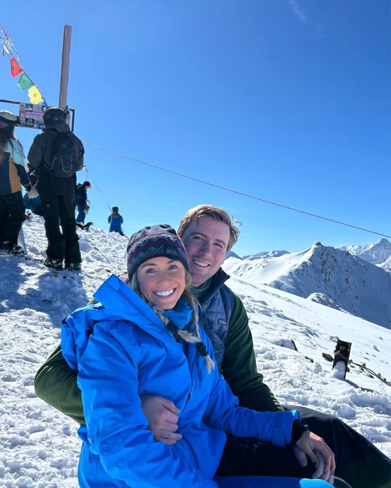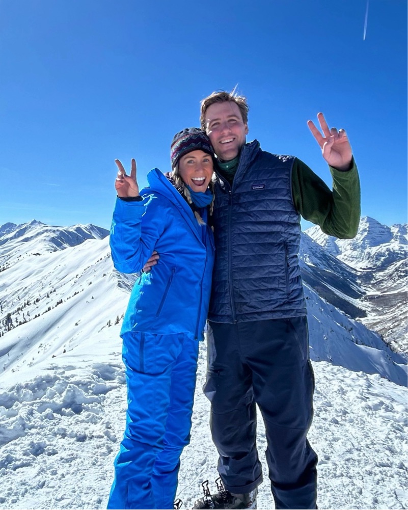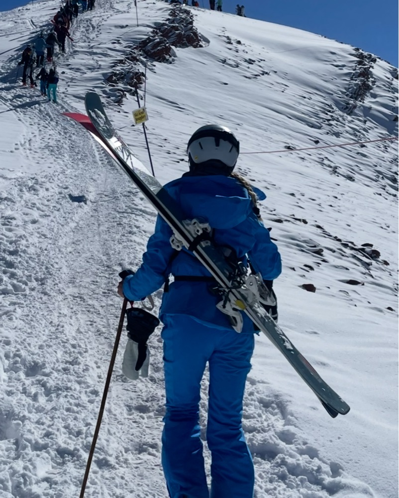 The cutest and comfiest blue ski set — perfect for chilly conditions or you can take the jacket off for warmth!