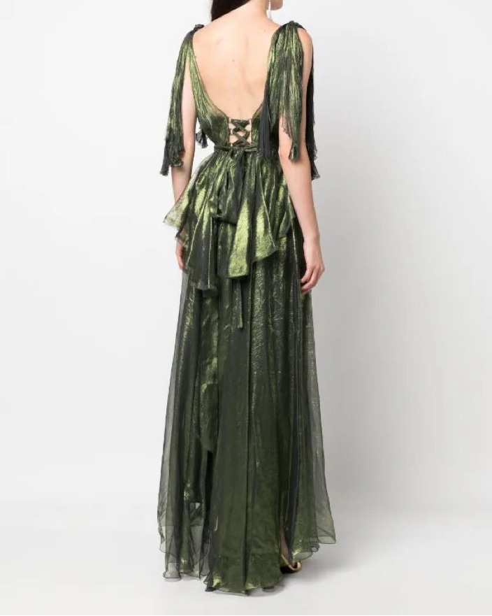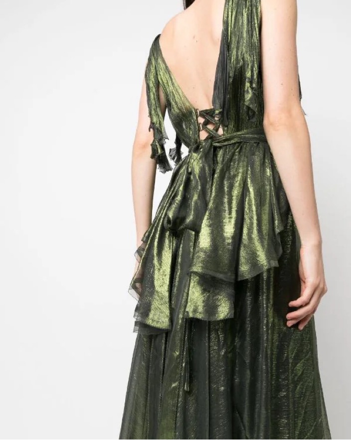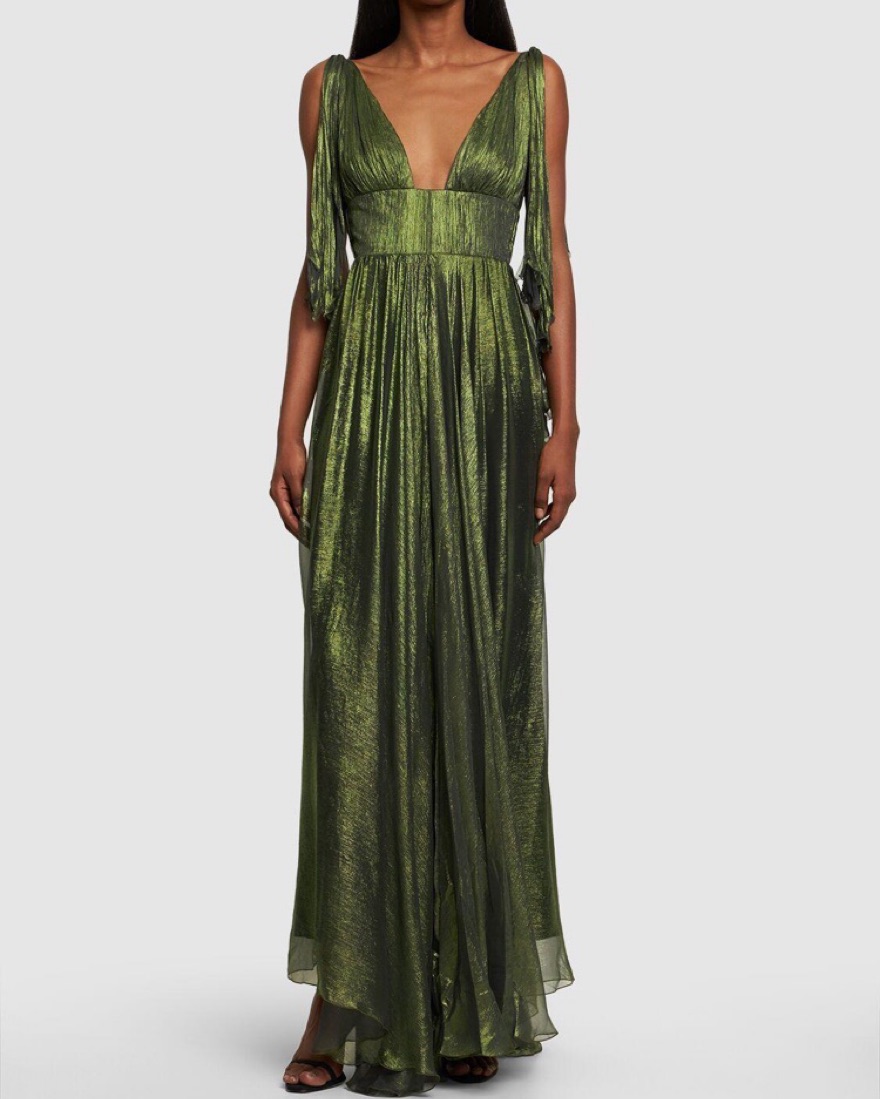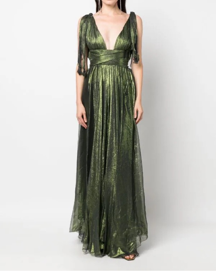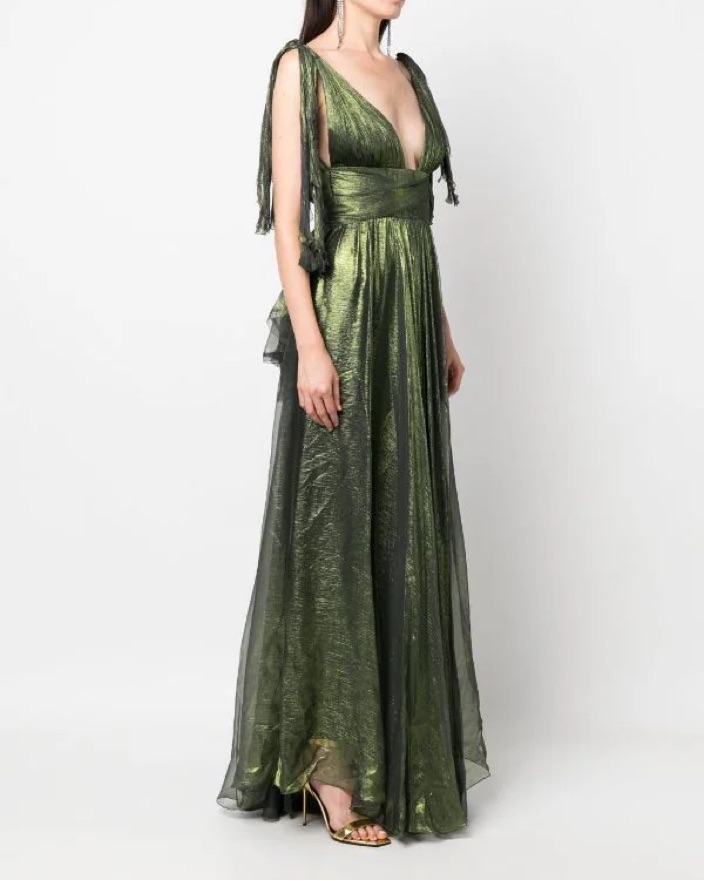 Ada Metallic Silk V-neck Gown jade green silk draped design