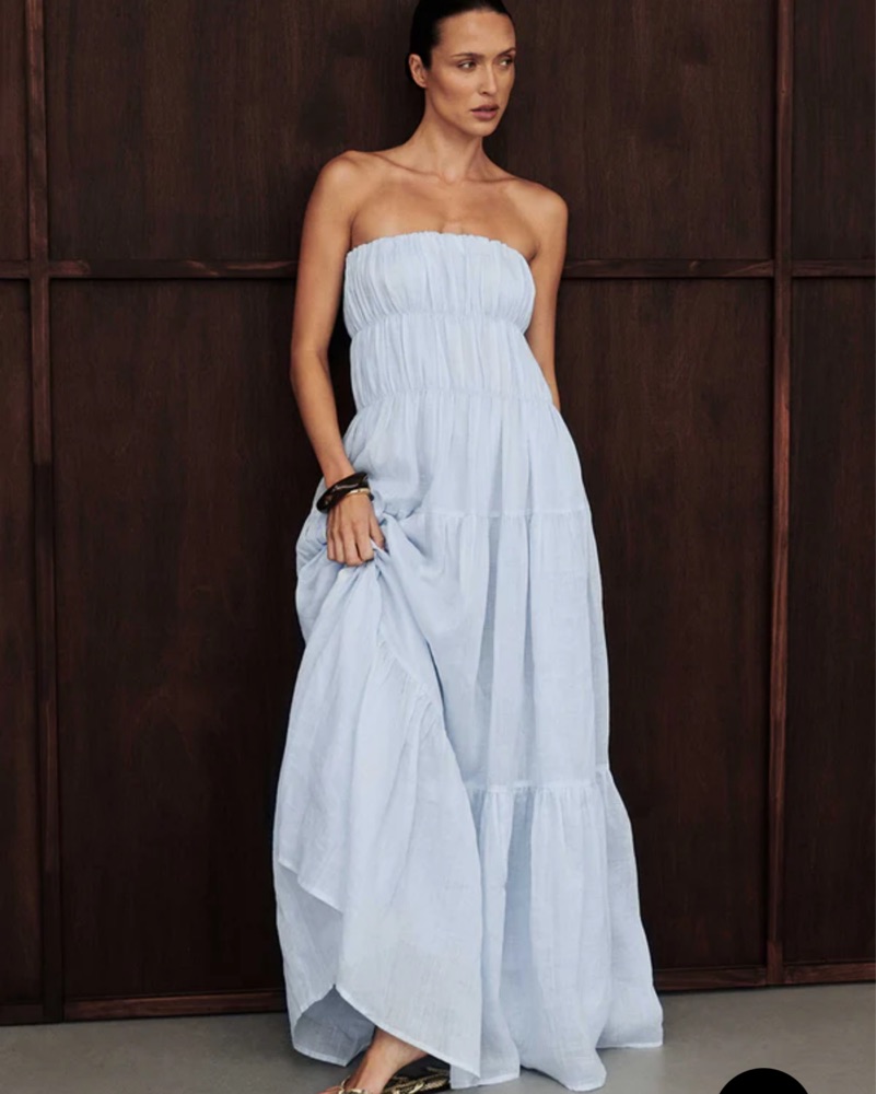 strapless tiered ramie midi dress
