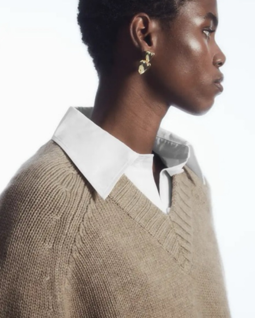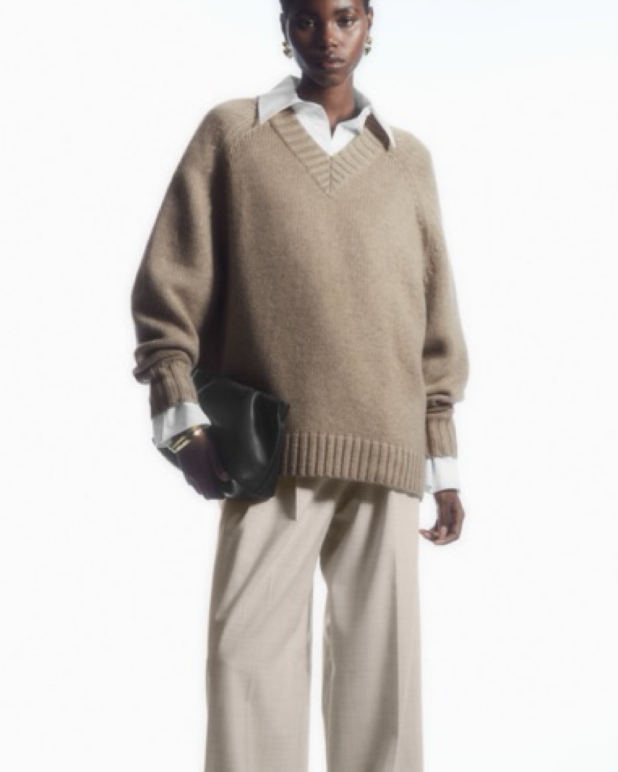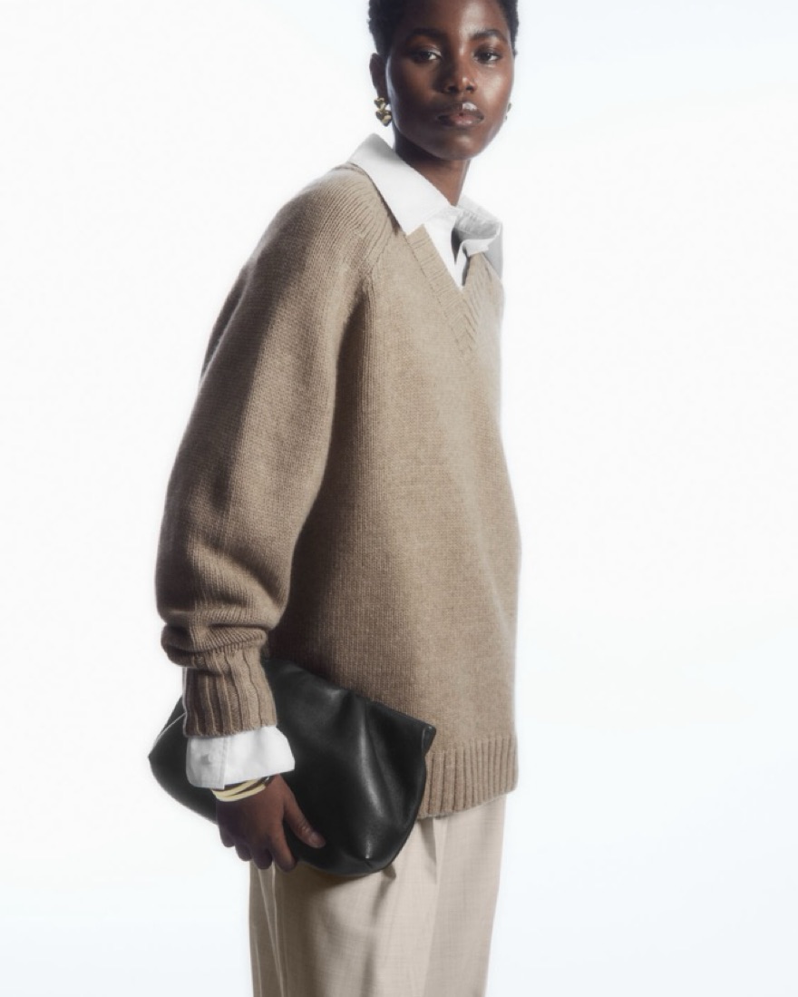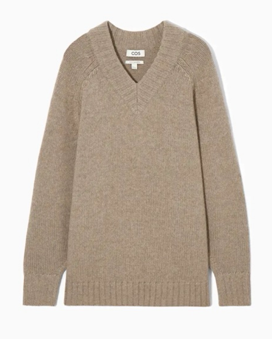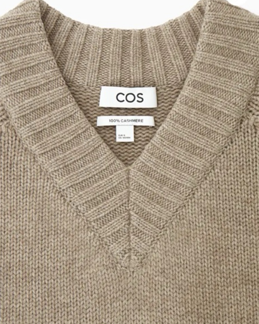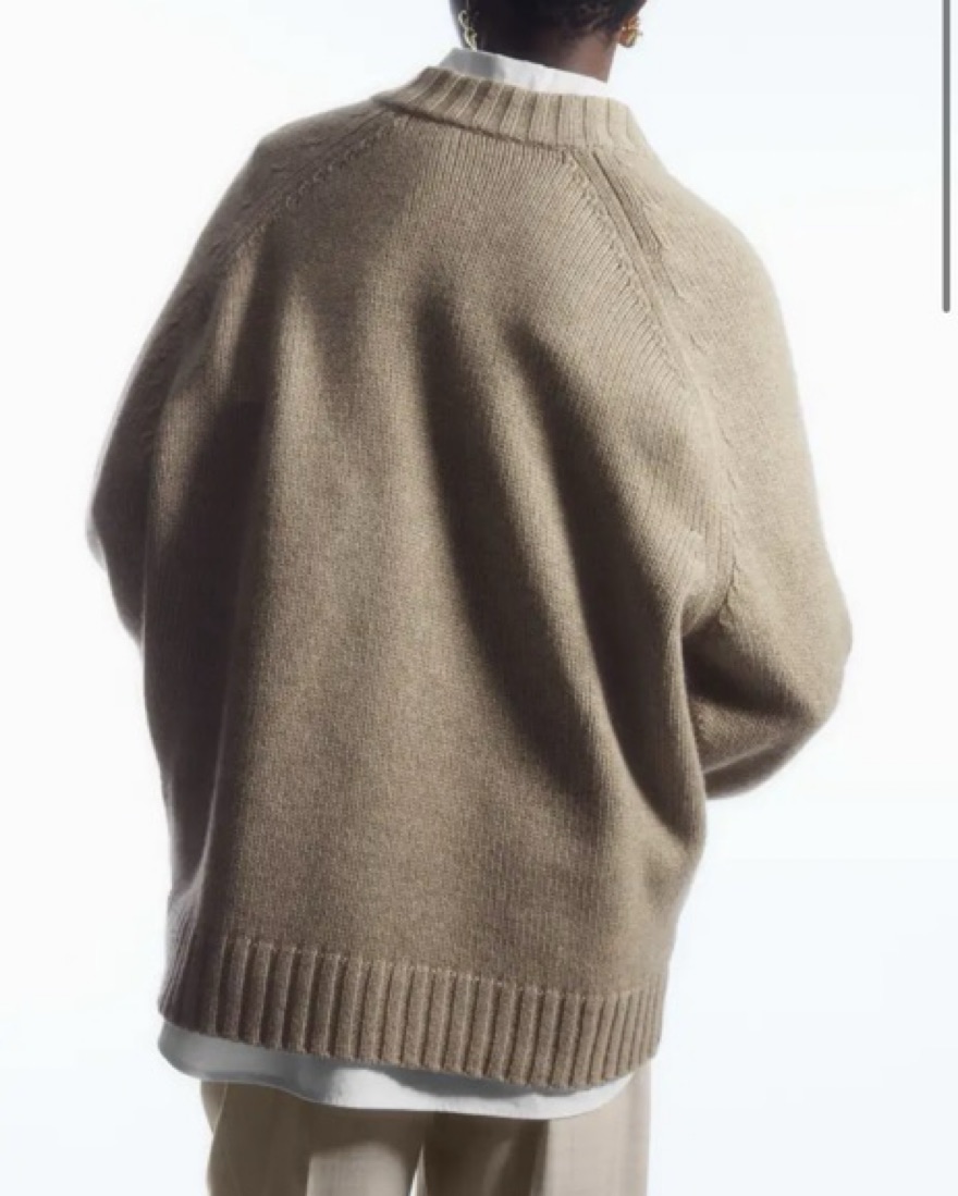 100% cashmere, giving it a luxuriously weighty hand feel. It's designed for a cocooning shape and has a chunky V-neck, dropped shoulders and wide ribbed trims. Oversized fit! Fits up to size S oversized. Please take care ❤️