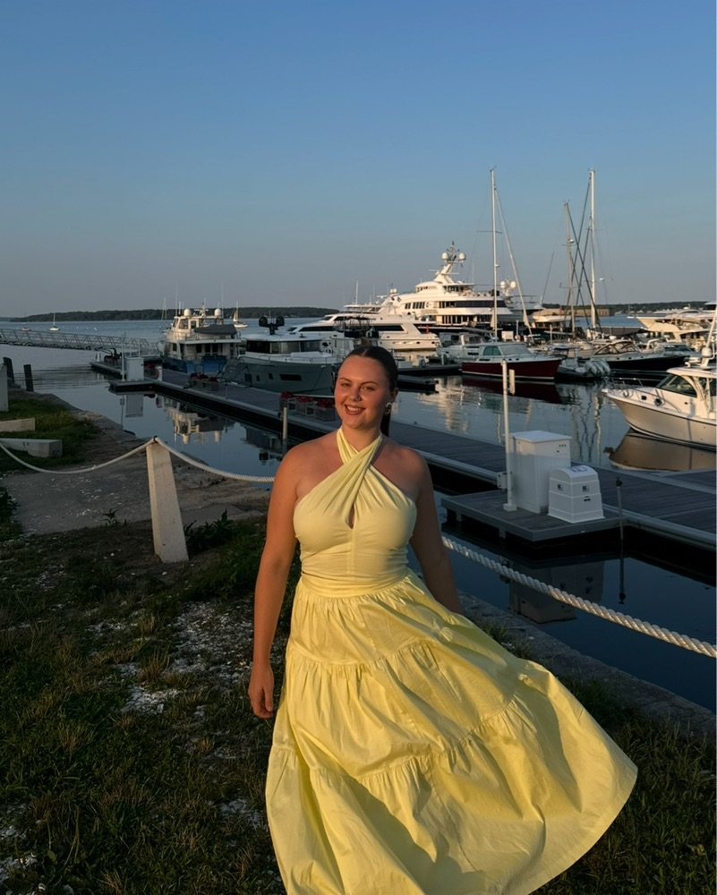 STAUD Smocked Kai Top in Sunray, a gorgeous discontinued butter yellow color. Tag says size L, but it could fit most sizes given the entirely stretchy back & adjustable tie of the halter top! Matching maxi skirt is also available to rent either together or separately.