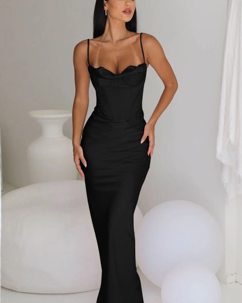 This stunning corset satin maxi dress is a dupe of the House of CB Charmaine. The figure-hugging silhouette is perfect for a formal event or special occasion.
