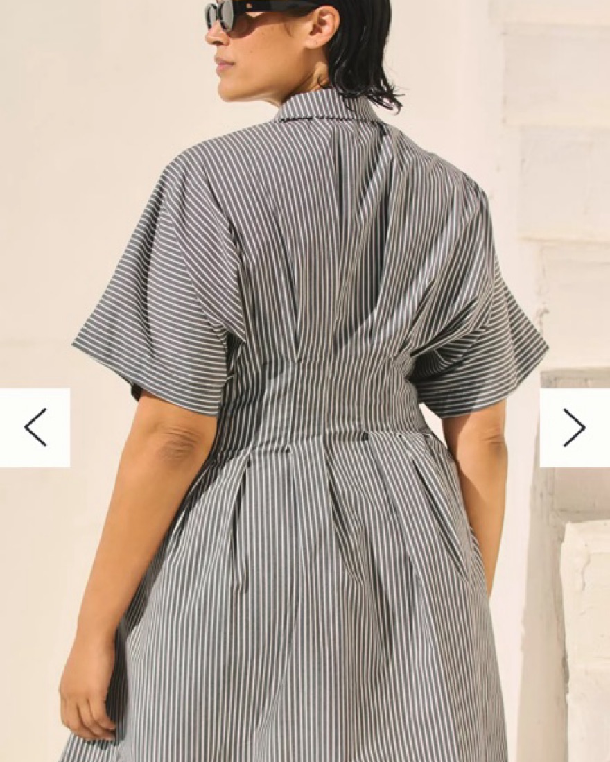 Model doesn’t do it justice but perfect dress for work or a baby shower cute with sneakers walking around Europe as well! Very comfortable, worn a few times but good condition, runs big I’m typically a small