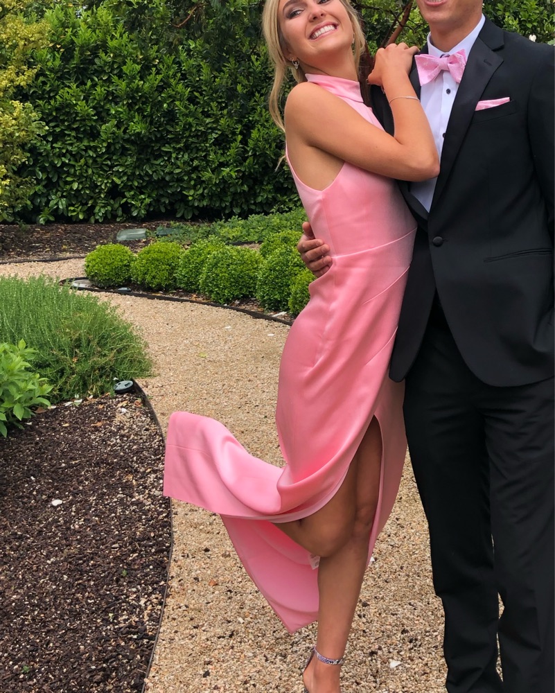 This stunning pink halter maxi dress is perfect for a formal event or special occasion. The fitted bodice and flowing skirt create a flattering silhouette.