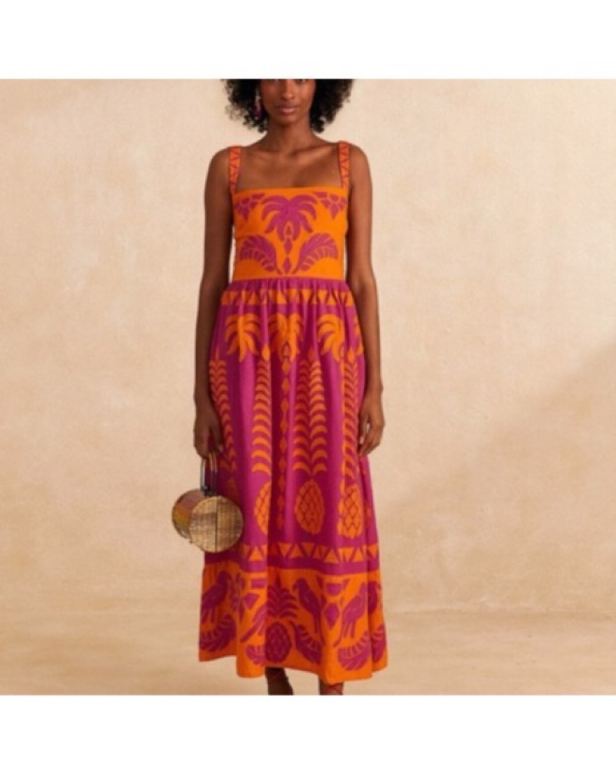 Farm Rio Orange Pink Pineapple Dress