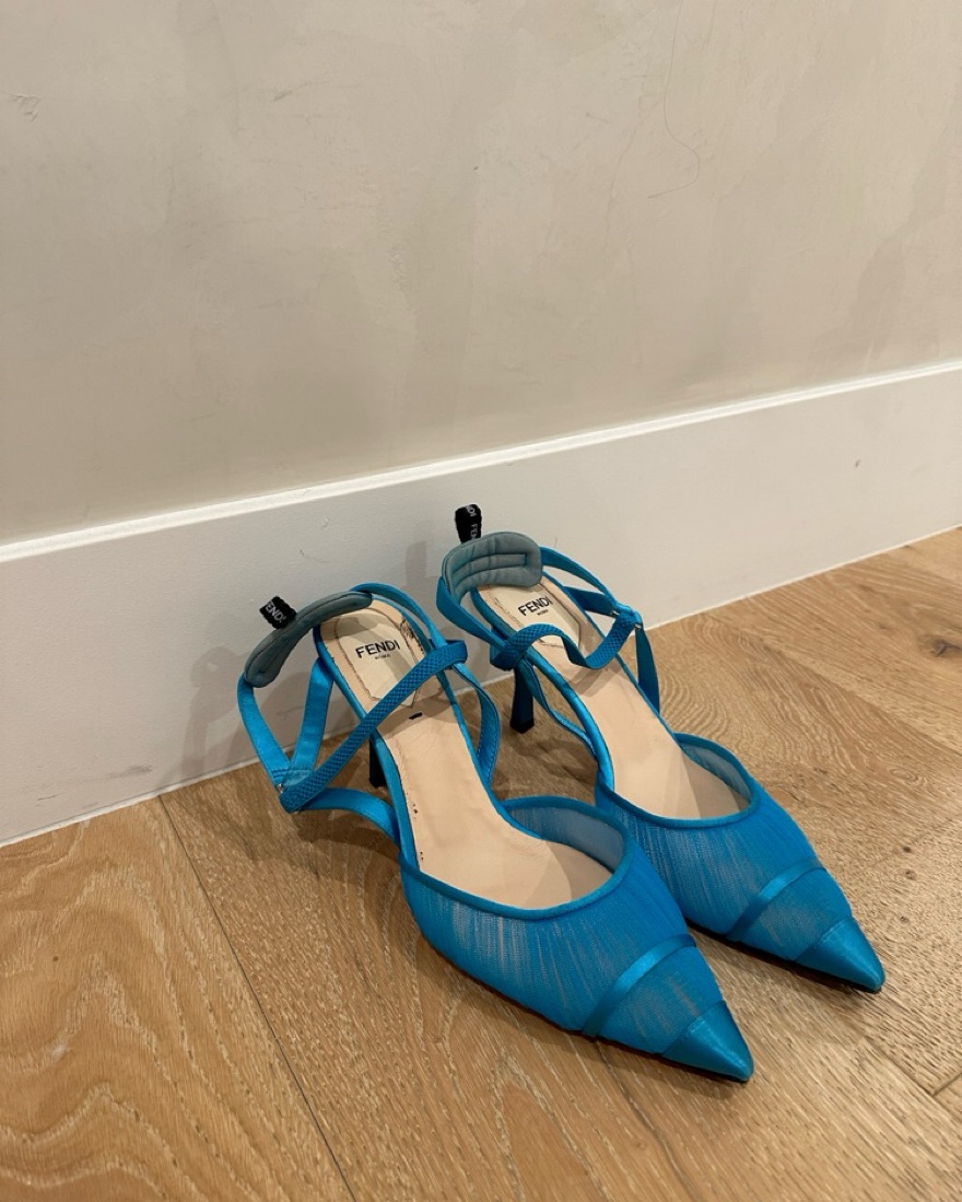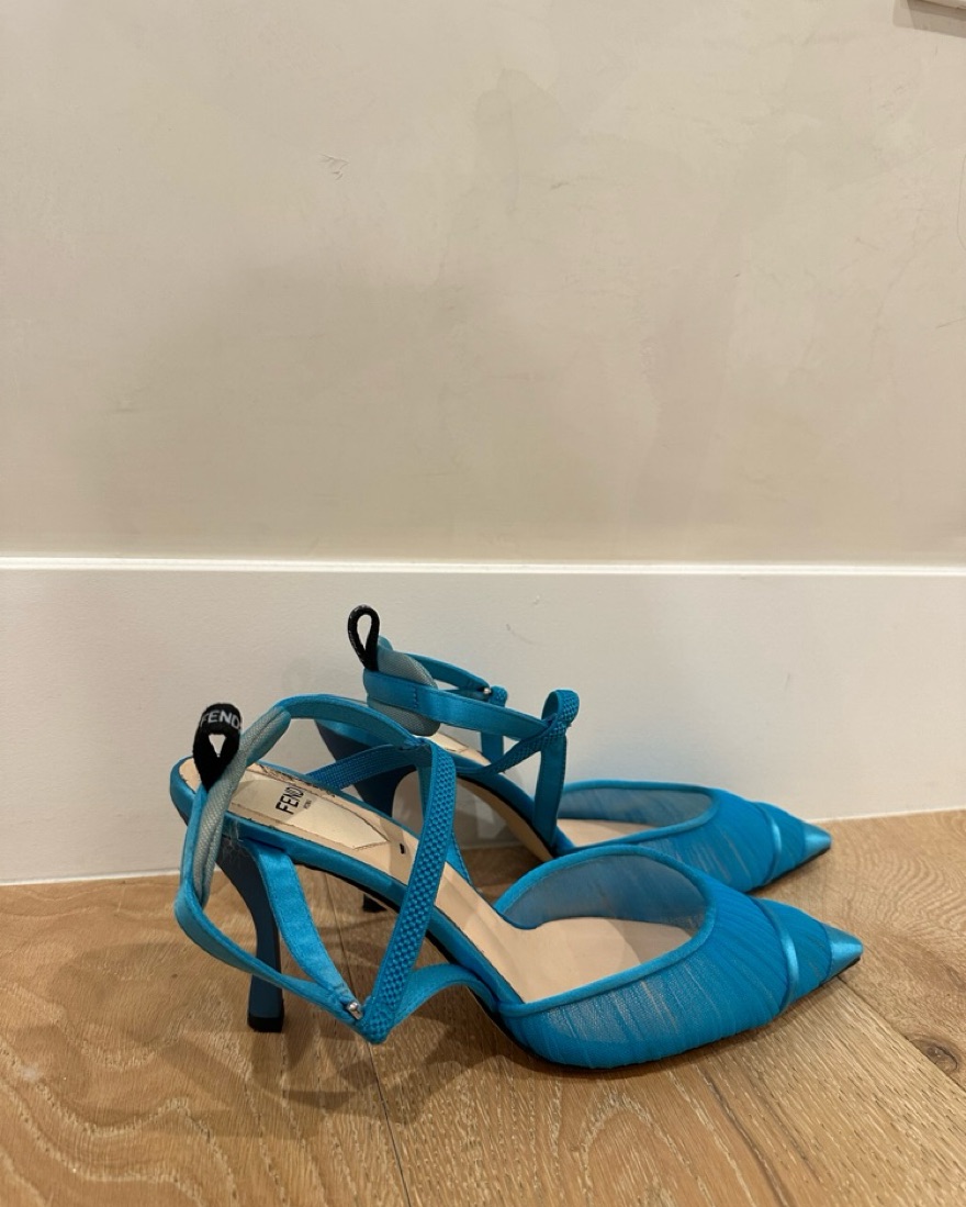 Fendi Blue Tule & Satin Slingback Pumps