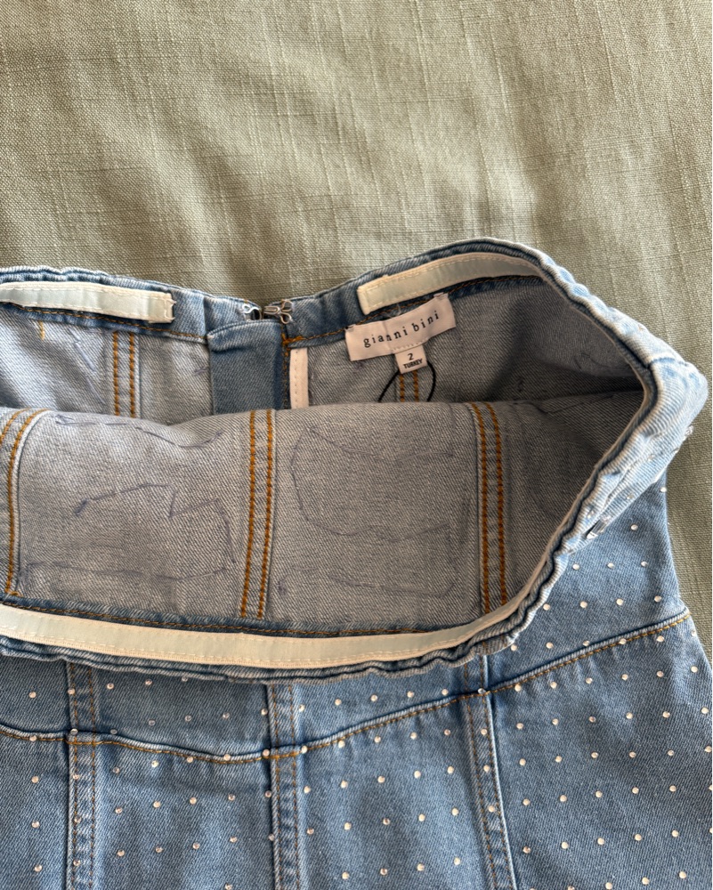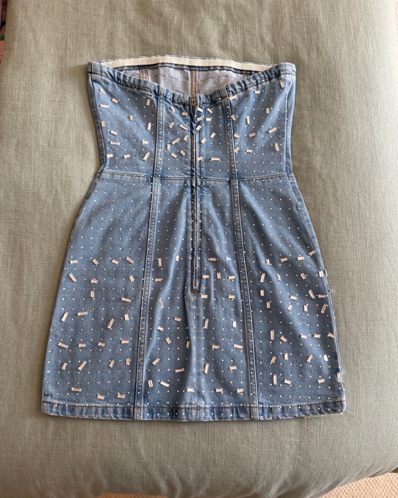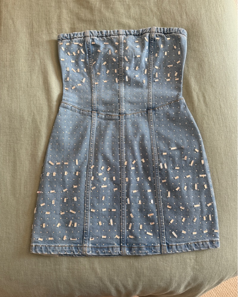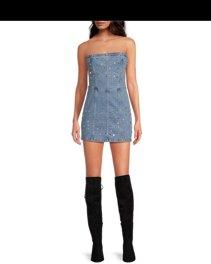 Strapless mini denim rhinestone dress, size 2 Gianni Bini