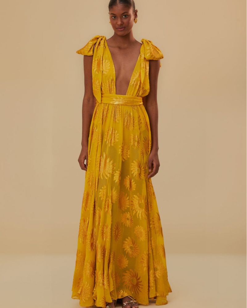 This stunning FARM Rio maxi dress combines elegance with a touch of whimsy. Made from 83% viscose and 17% metallic, it shimmers subtly, perfect for special occasions. The vibrant pattern and flowing design offer a flattering fit and make a bold statement. Care for it easily with dry cleaning instruc
