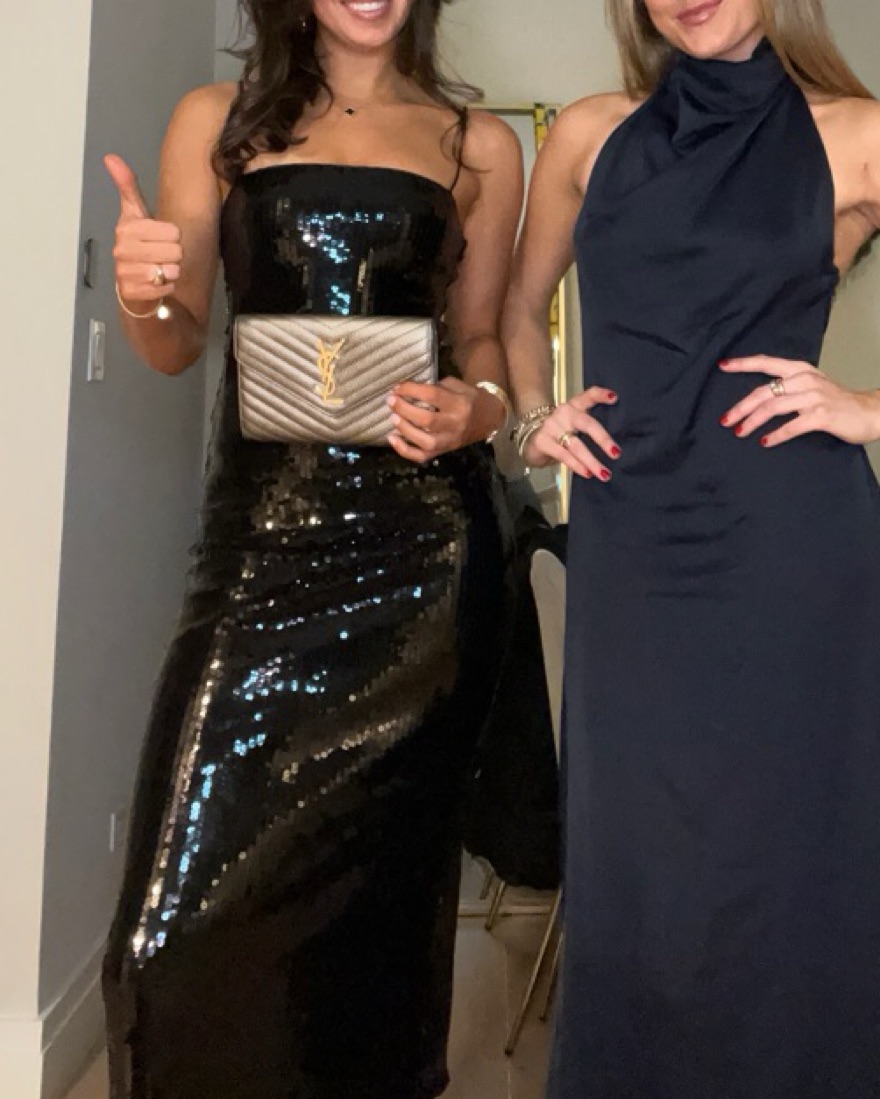 This black sequin dress is perfect for a night of glamour. Figure-flattering shine makes it perfect for any formal event.