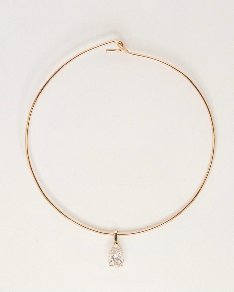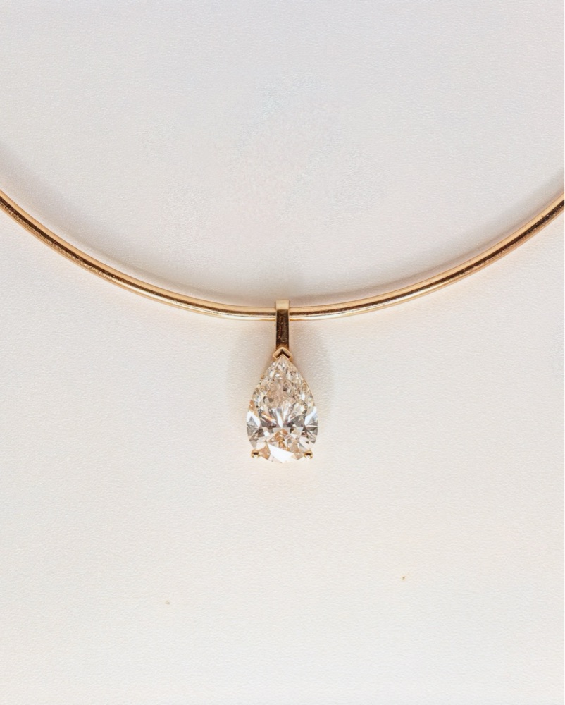 The stunning choker necklace all the hot girls have!! This design is all over pinterest for a reason. 5 carat pear diamond pendant with 14k yellow gold. Available as with a gold chain upon request.