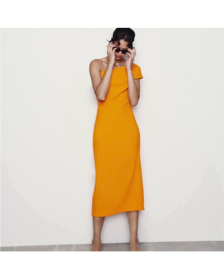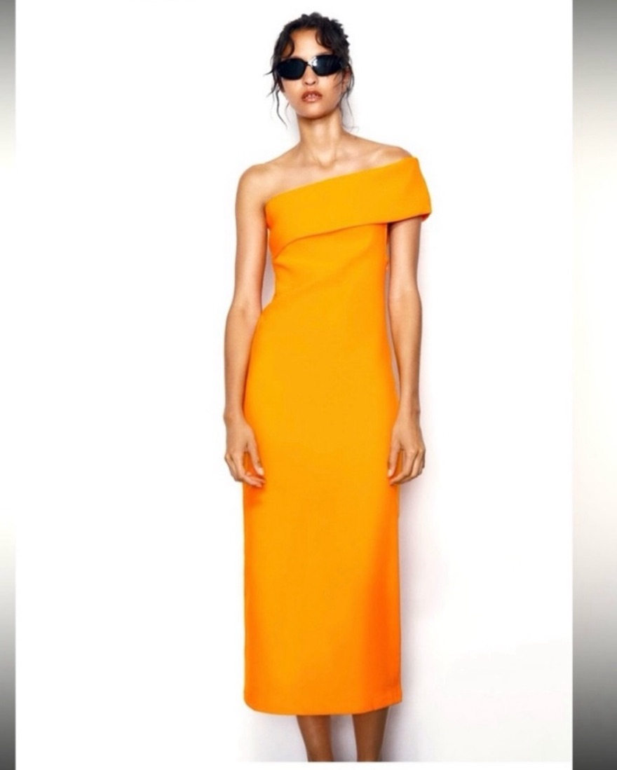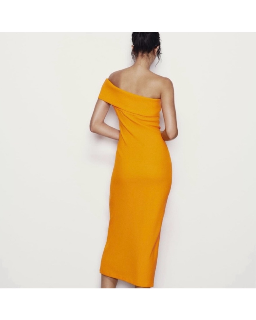 Orange Zara One-Shoulder Midi Dress