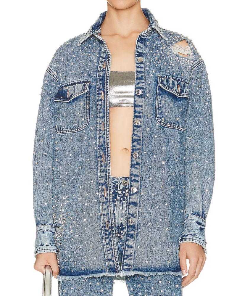 Beautiful embellished denim jacket by Retrofete. Throw it over any dress or top and jeans outfit for the perfect statement piece.