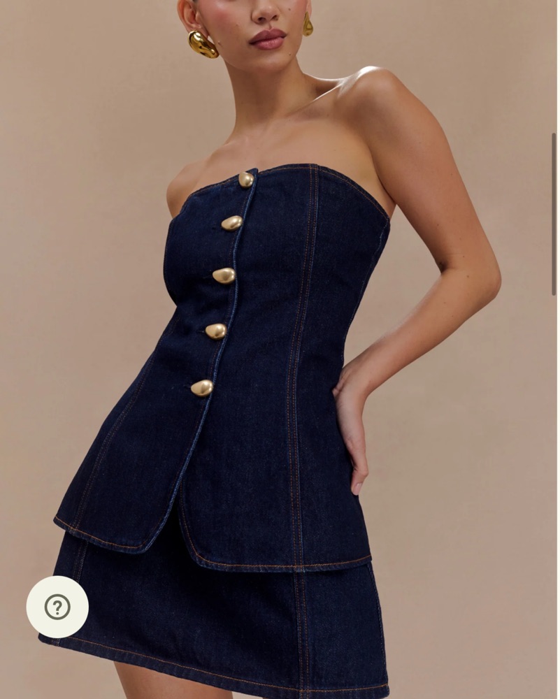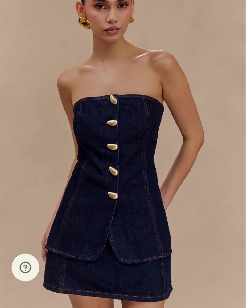 Meshki strapless longline button top in indigo blue. Can pair with matching shorts - Abel denim shorts.