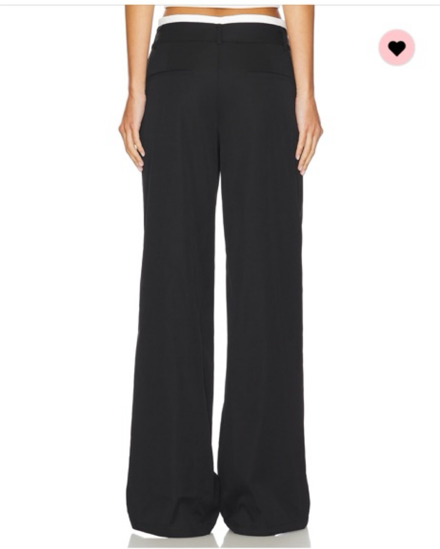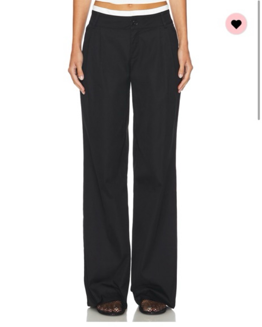 Perfect black pants with a white strip at the top. super flattering and light weight!