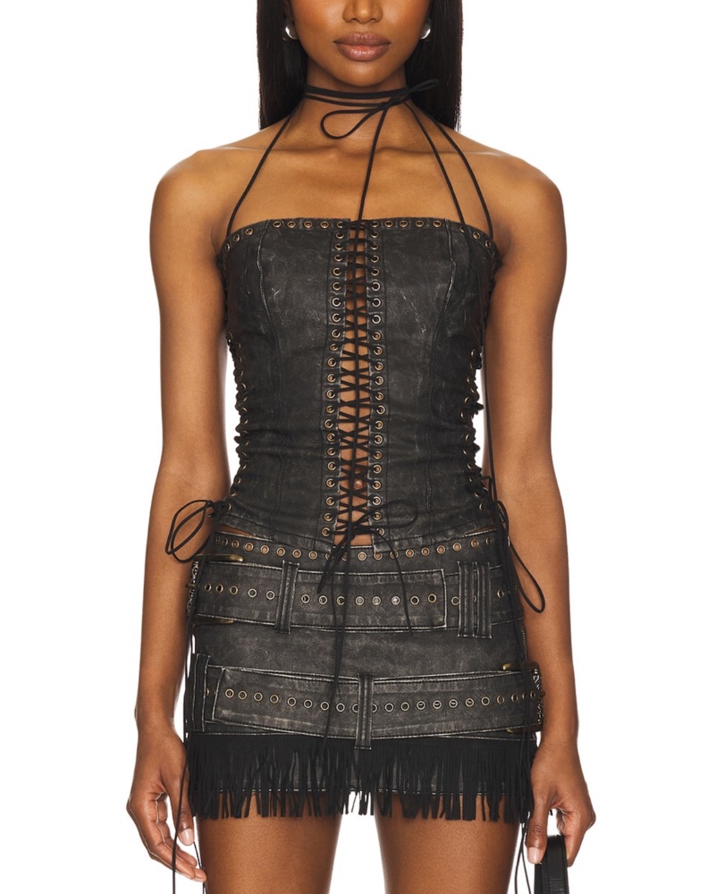 Jaded London Odile faux leather lace up corset (size 4) and Odile mini skirt (size 6). Willing to rent separately as well. Please message me! Perfect for Coachella or any music festival