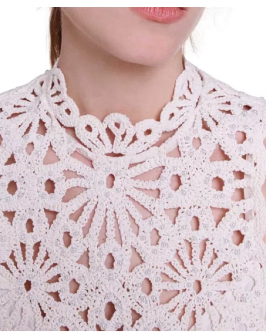 Crocheted floral motif and pearlescent beading