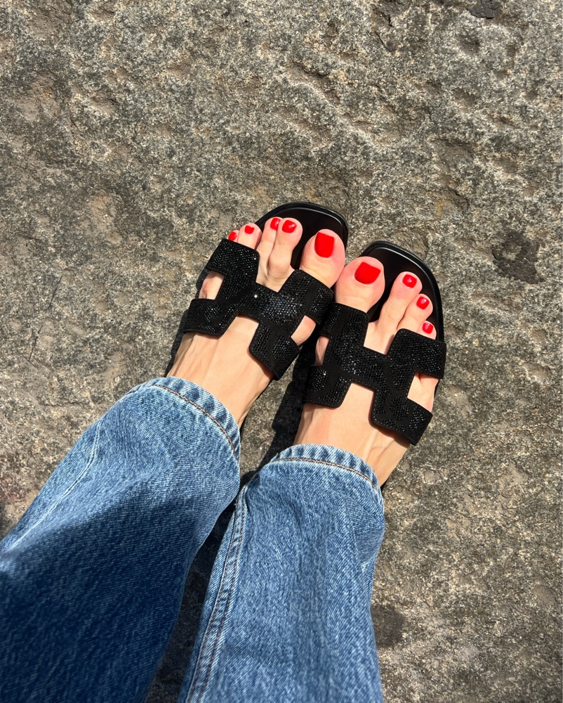 Sparkly Hermes Oran Sandals by Hermes - Pickle