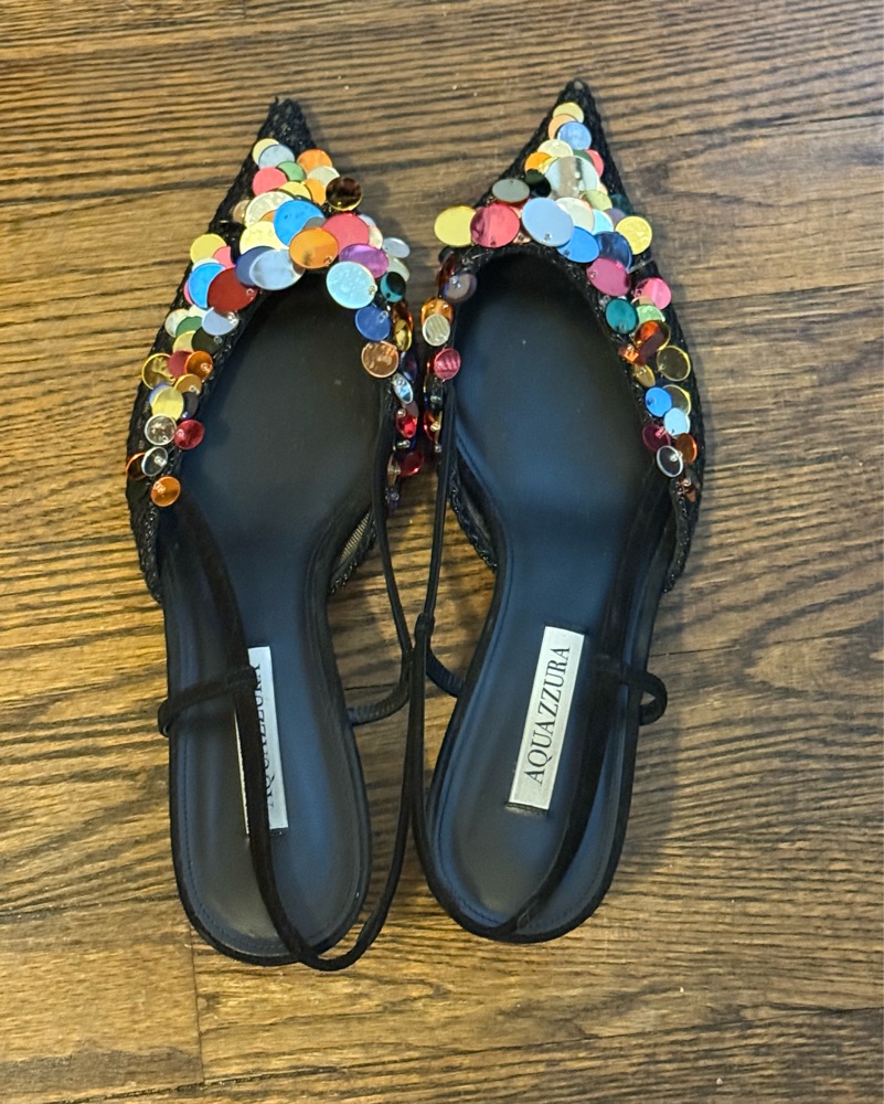 These dazzling Aquazzura flats will elevate any outfit with their eye-catching embellishments. Perfect for a night out or a special occasion.