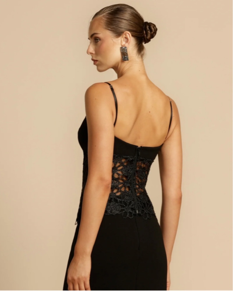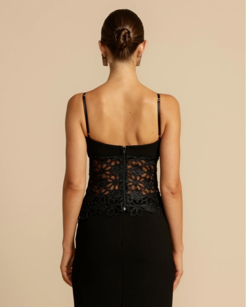 Padded cups provide the bust with lift and support, beautifully framed by a flattering sweetheart neckline. Embellished with raw floral edges for an understated touch of refinement. Intricate adjustable straps and delicate tulle lining complete with comfort. Serving as the ultimate styling piece for