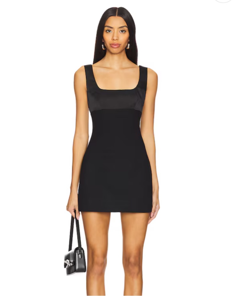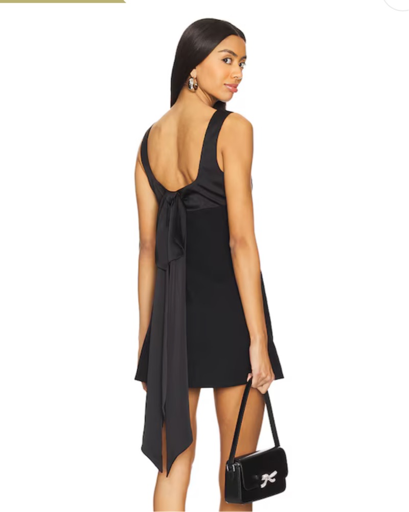 This chic black mini dress is perfect for a night out on the town. The flattering silhouette and elegant tie-back detail make it a versatile choice for a variety of occasions.