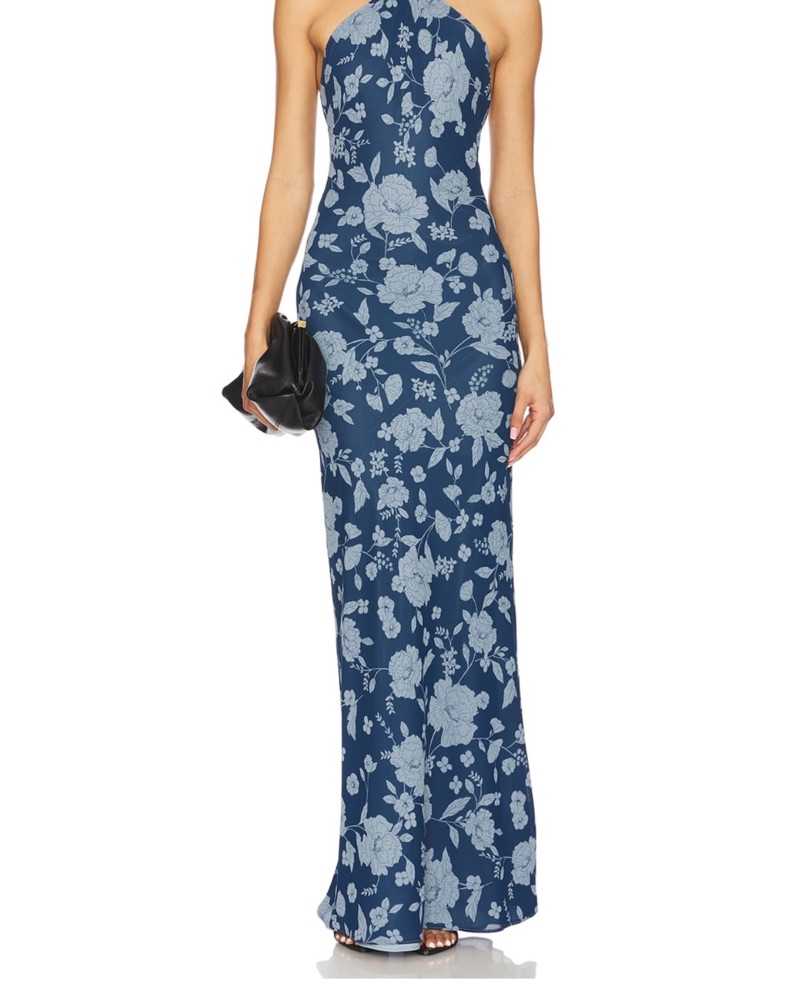 worn once, not shortened! Brand new Stone Cold Fox Avery Gown in Blue Floral size Medium