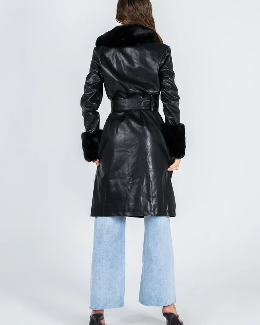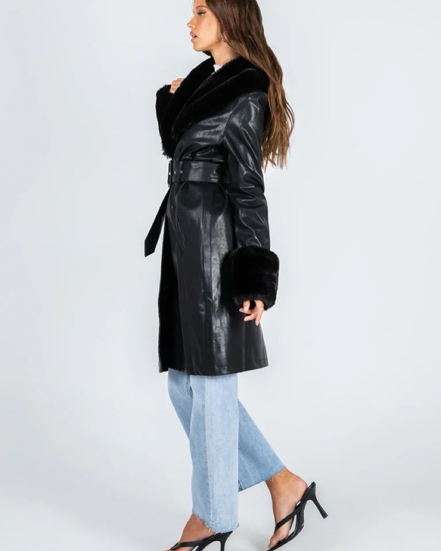 Brooklyn Faux Leather Belted Long Coat by Princess Polly - Pickle