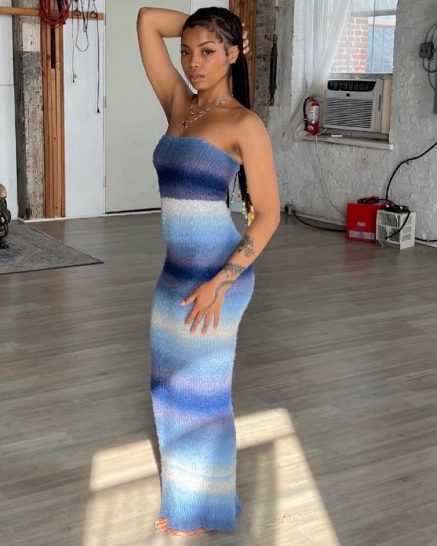 JBD Apparel is a black owned brand with their handmade items. Bought a couple pieces crom them including this multi-toned blue knit maxi. It is seriously a work of art! Please be very gentle with this as it is delicate. I am 5’7 and it hits me right above the ankle. Size S but could fit XS