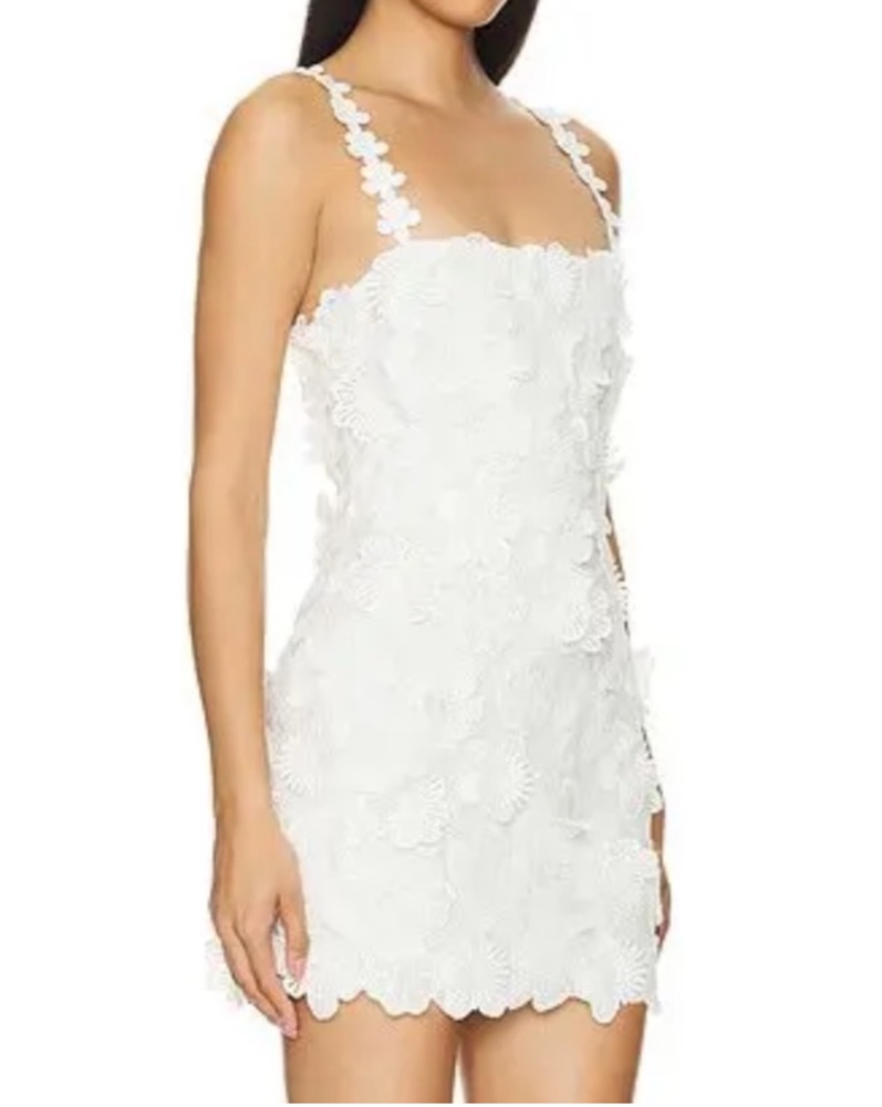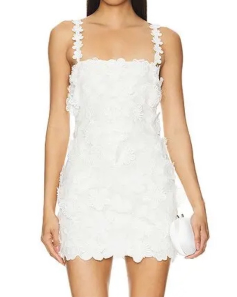 Tularosa Kimmy Mini Dress in ivory / white. Great for a bridal event or graduation.
