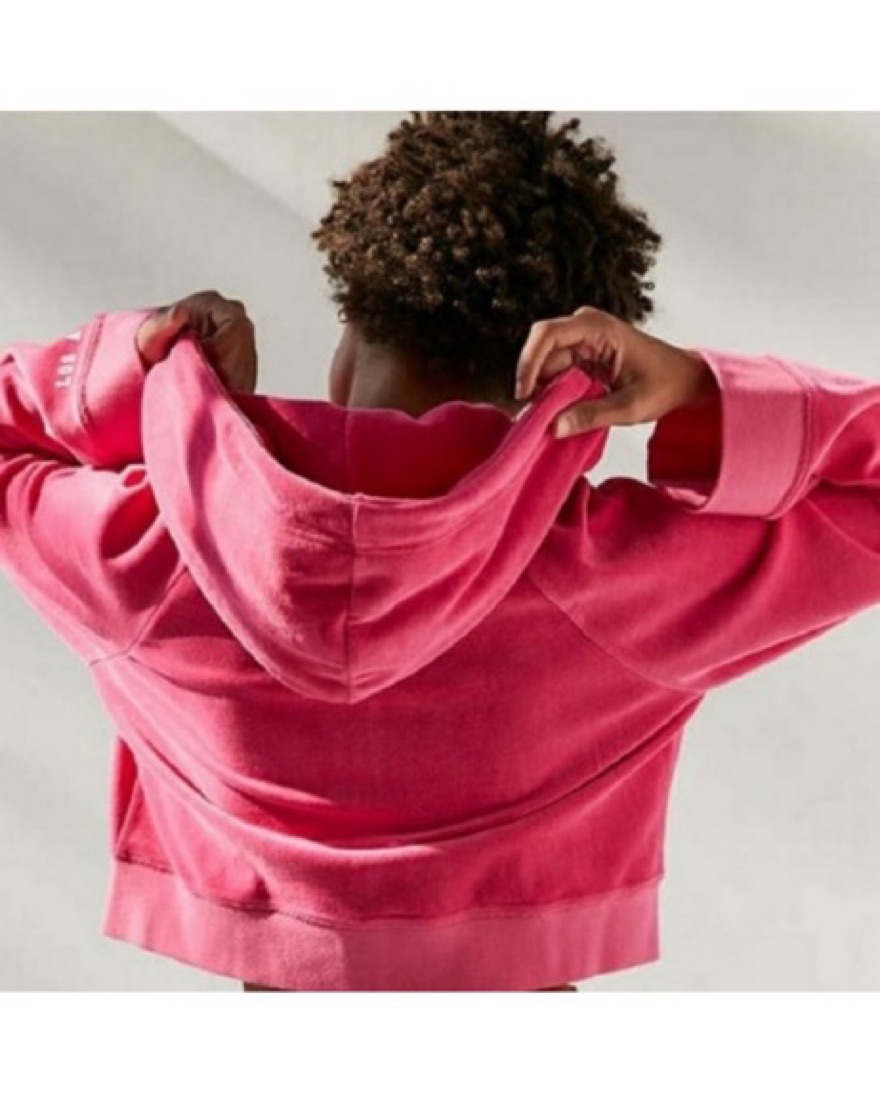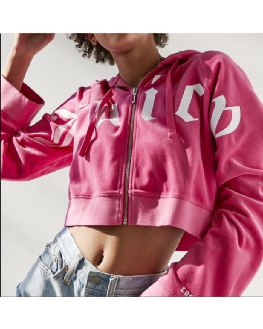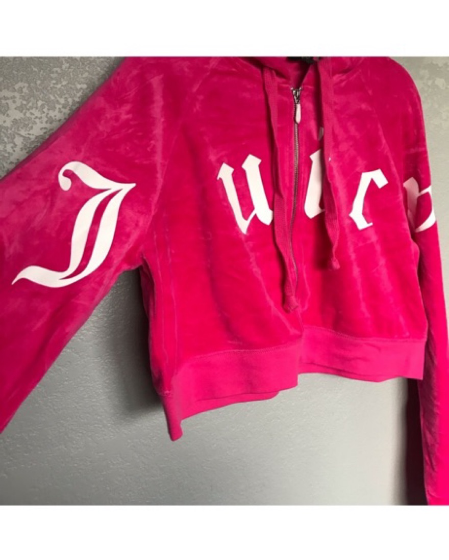 Hot pink classic velour velvet juicy couture zip up jacket hoodie. This is a size large and fits slouchy. Super comfortable.