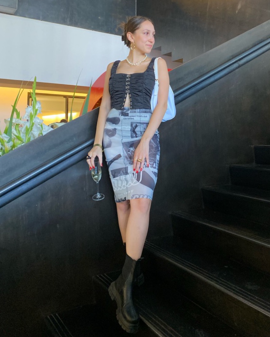 Sheer newspaper print midi skirt. Can be styled as a going out look or as a swim cover up.