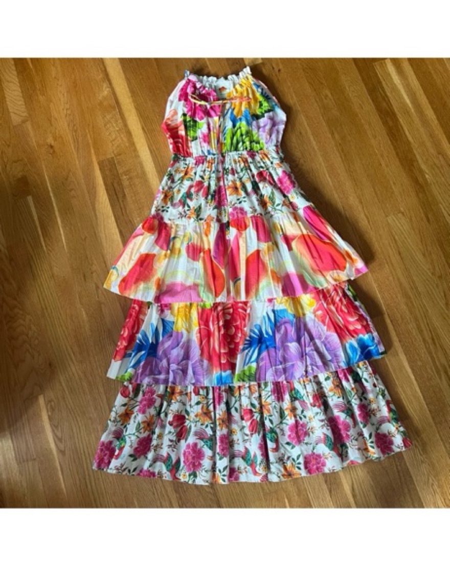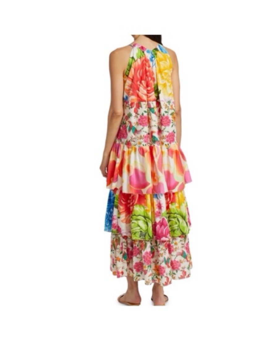 Farm Rio white mixed prints tiered maxi