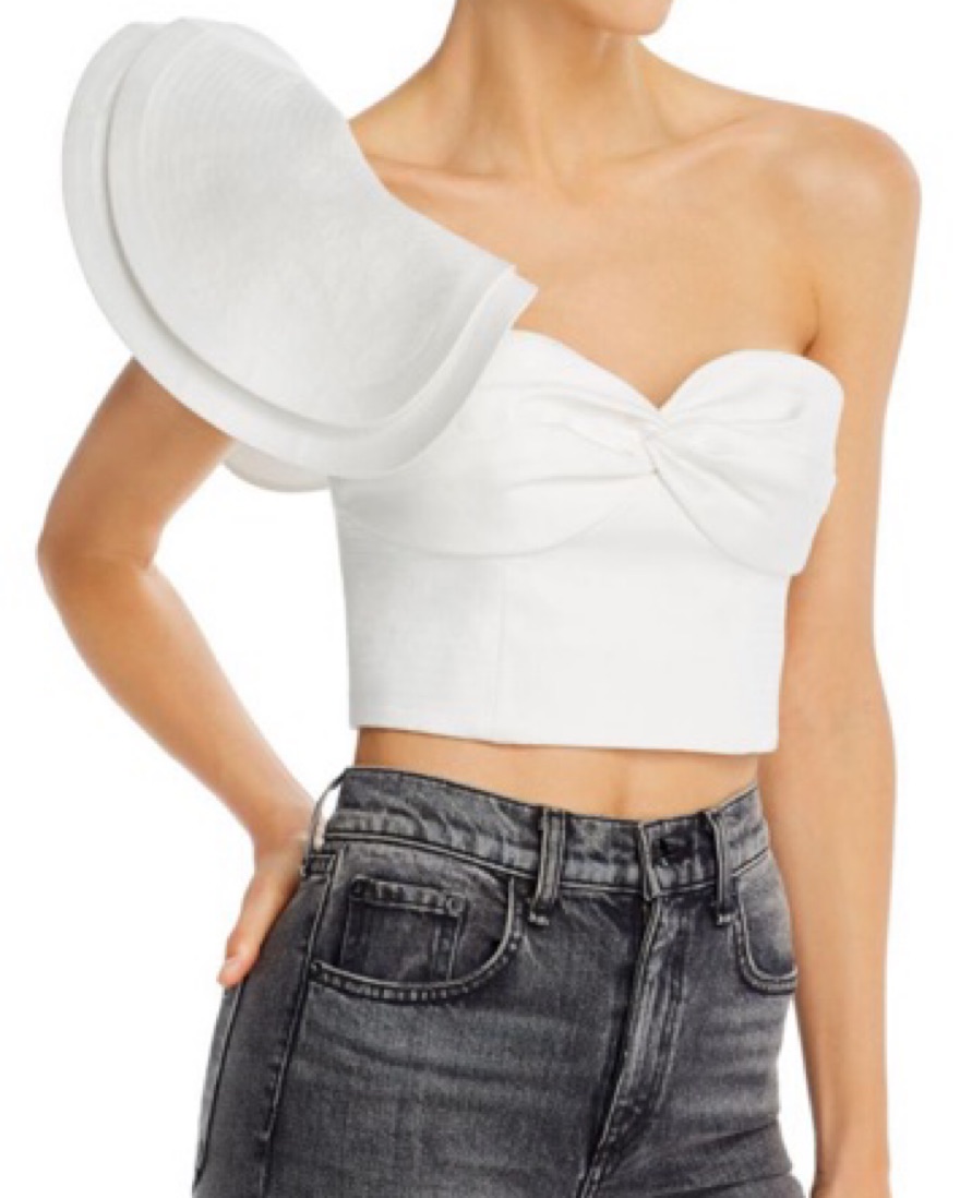 Amur white crop top with accent shoulder- perfect for summer / vacation ✨ (size is petite)