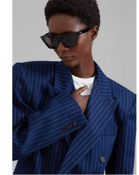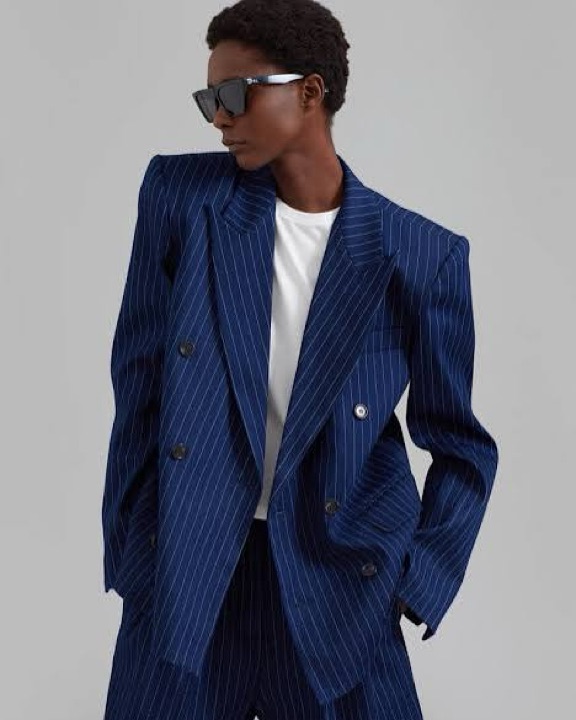 This chic pinstriped blazer + pant is a versatile piece that can be dressed up or down. Pair it with tailored trousers for a polished office look or with denim for a more casual vibe. Blazer is a small pants are xs