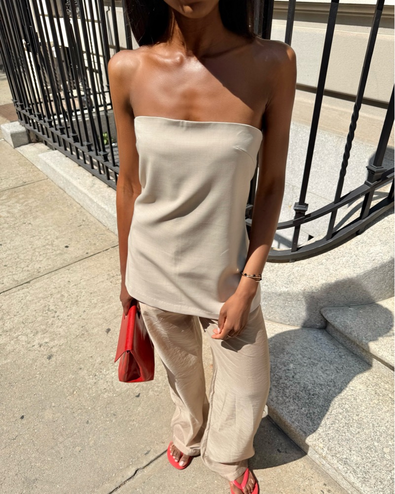 Kit Strapless Top - Beige (Size small but fits like a medium) and Abra Sheer Trousers - Beige (Size Medium)
