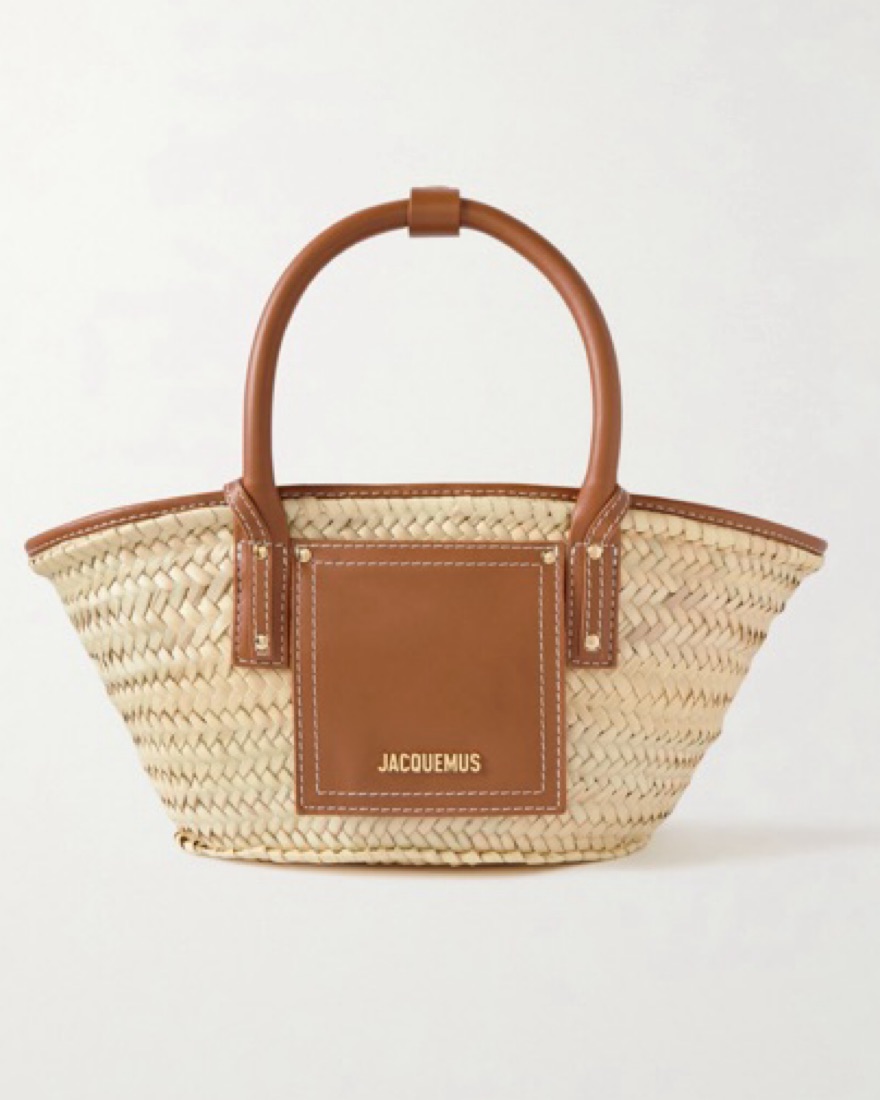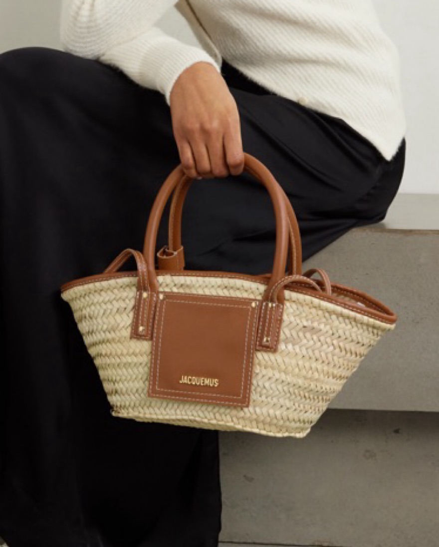 JACQUEMUS Le Petit Panier Soli leather-trimmed raffia tote
