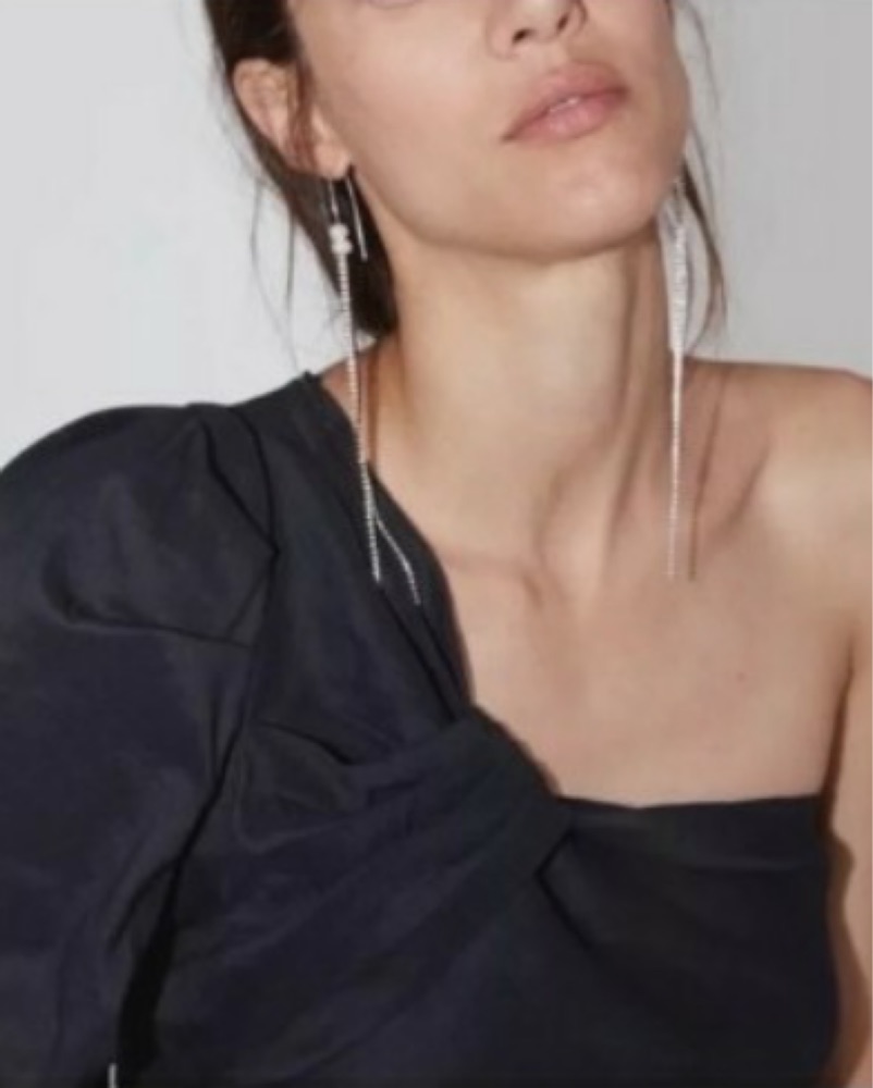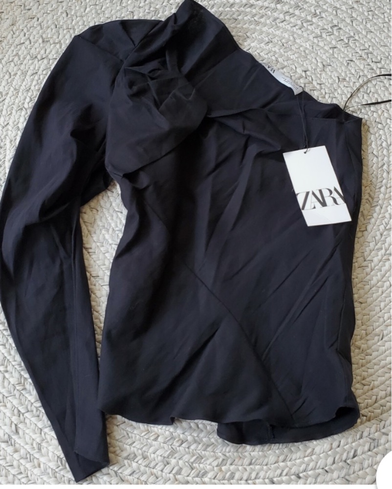 Black One-Shoulder Puff Sleeve Top by ZARA - Pickle