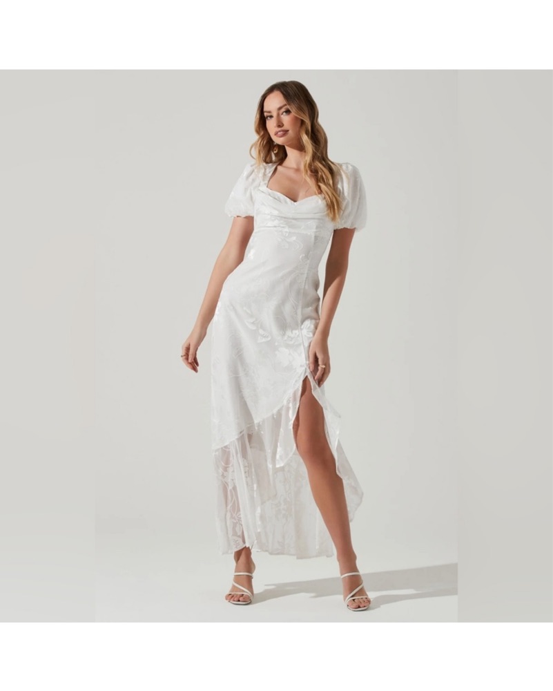 Beautiful white Dayanara ASTR The Label white floral dress with a puff sleeve and open back