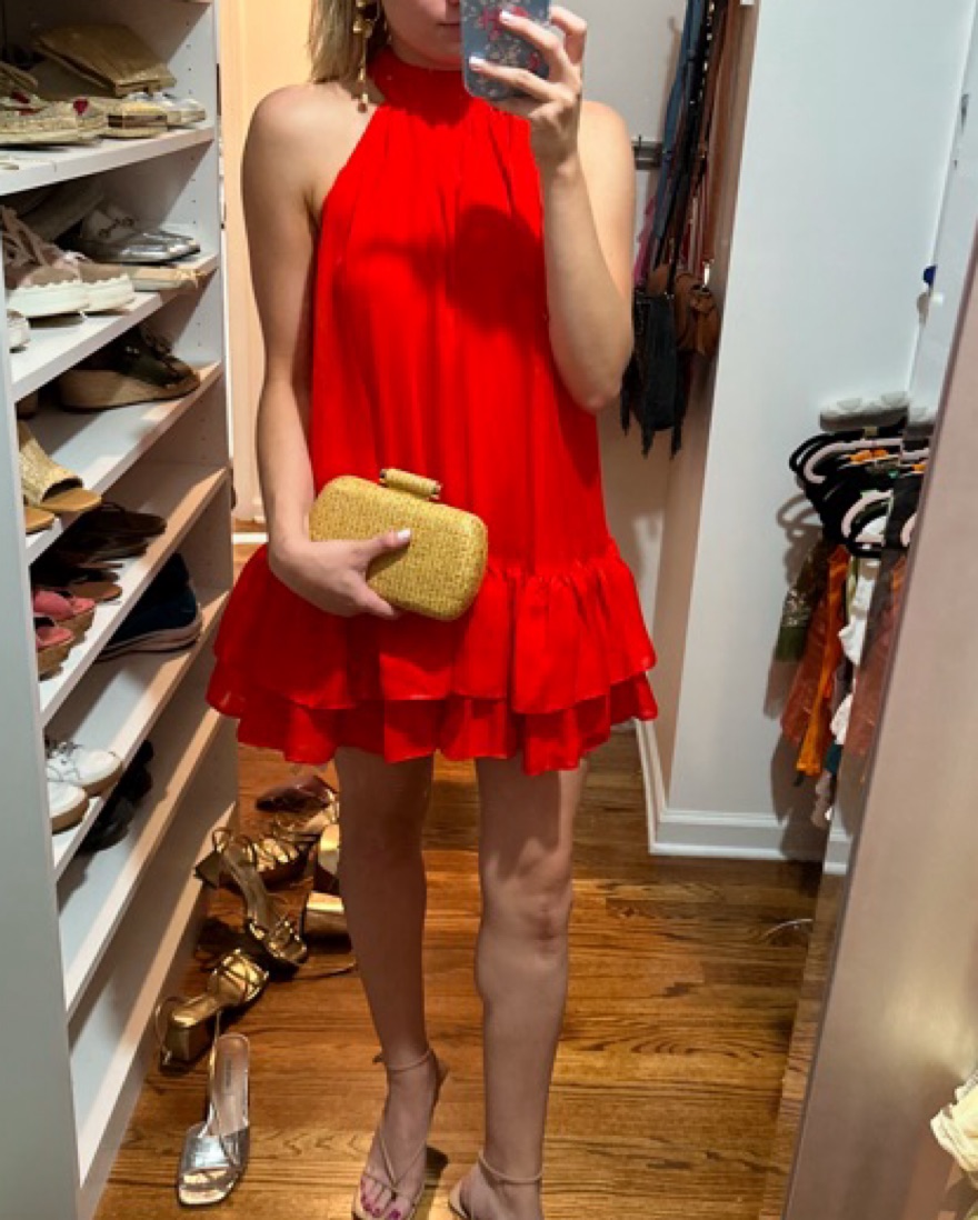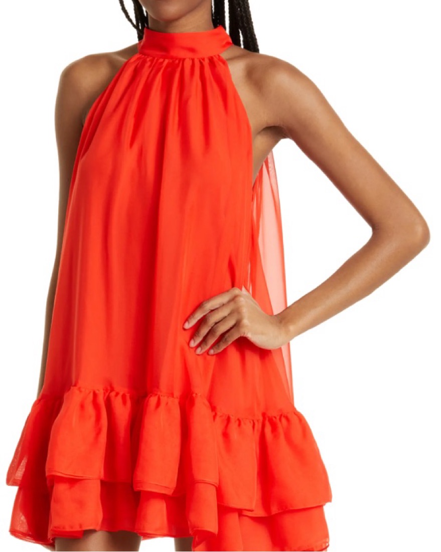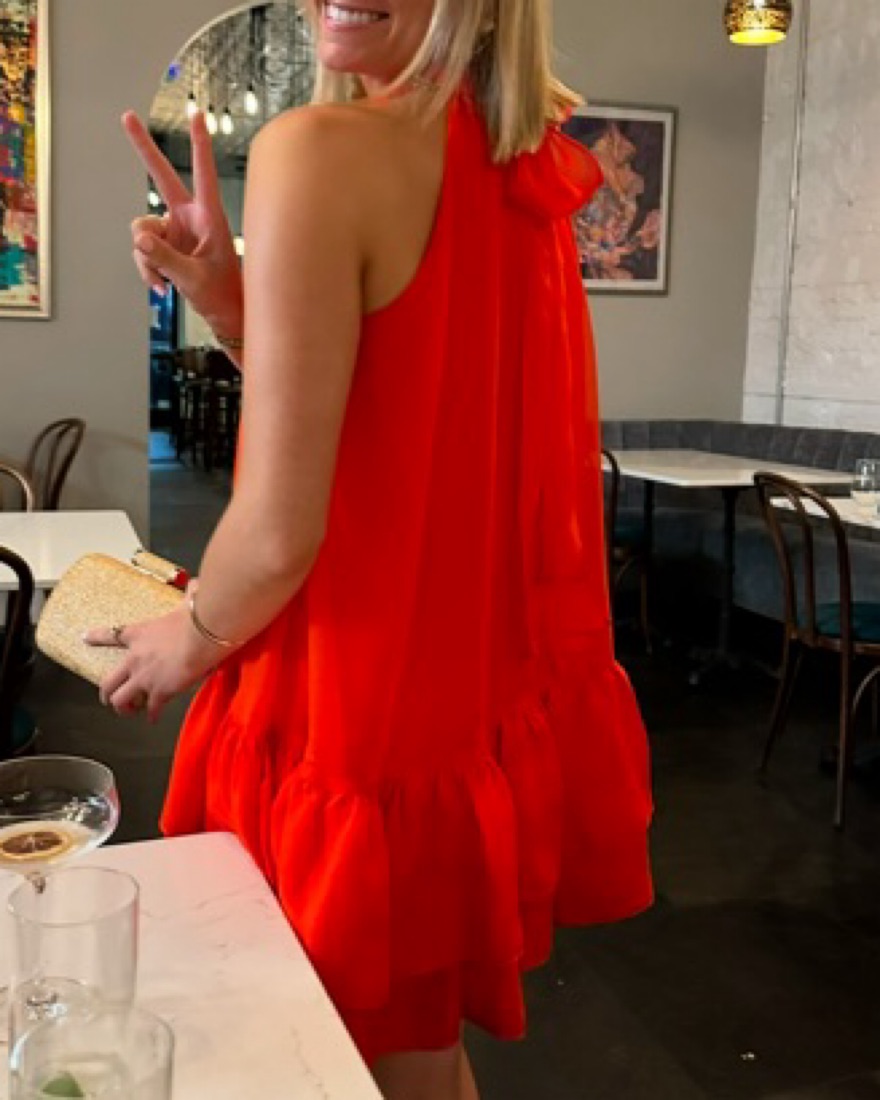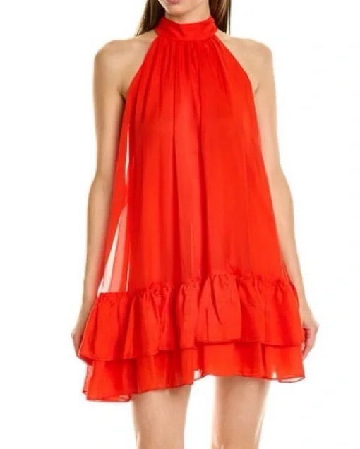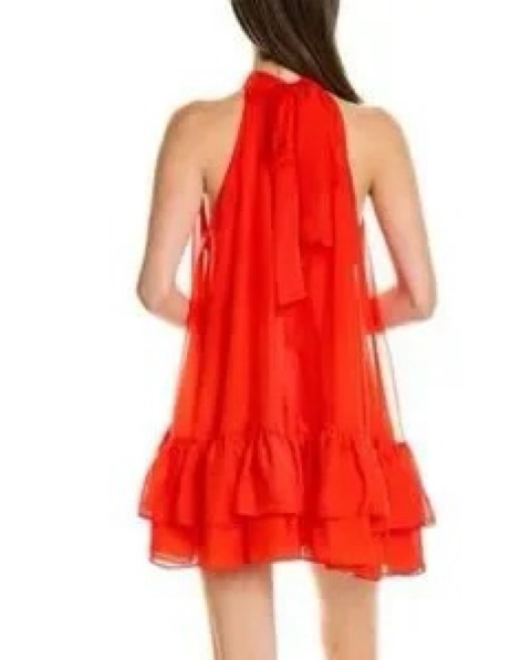 Alice + Olivia Erna dress. Such a fun flouncy babydoll silhouette in a bright red with a statement bow in the back. Sheer chiffon overlay. Can style for different seasons, only worn once. Better for shorter gals as it’s pretty mini