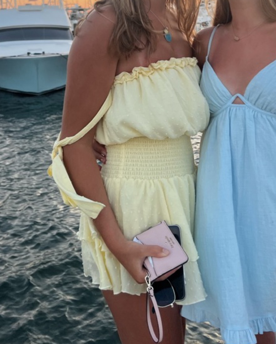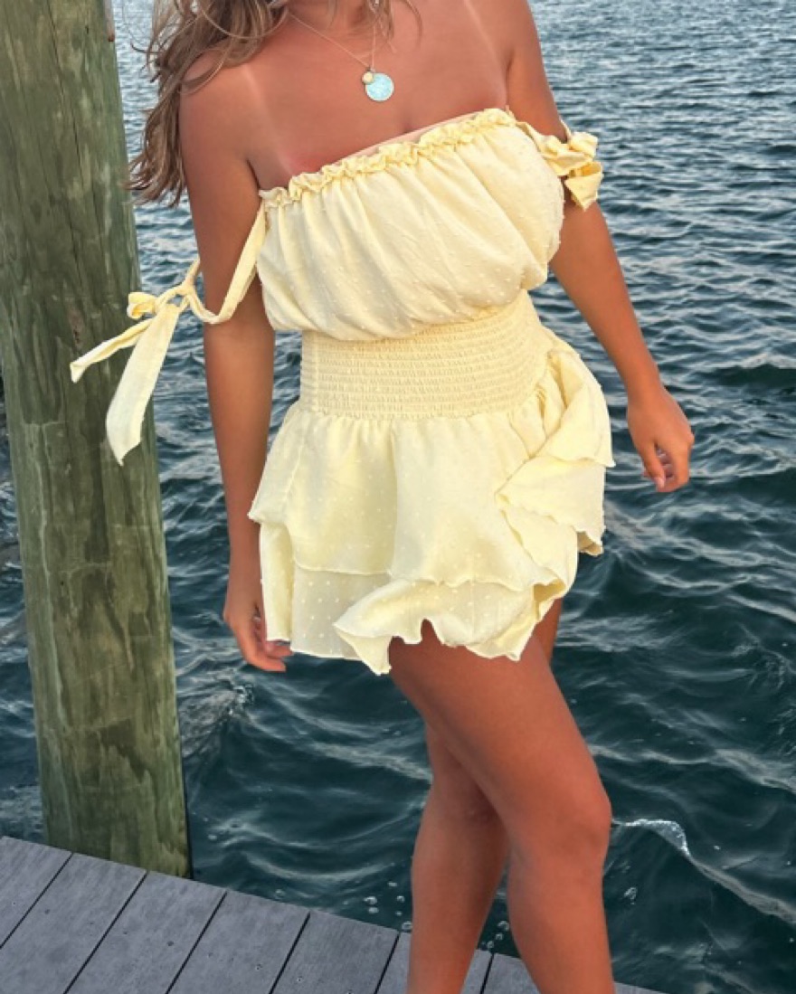 This adorable strapless mini dress is perfect for a summer day on the beach or a night out with friends.