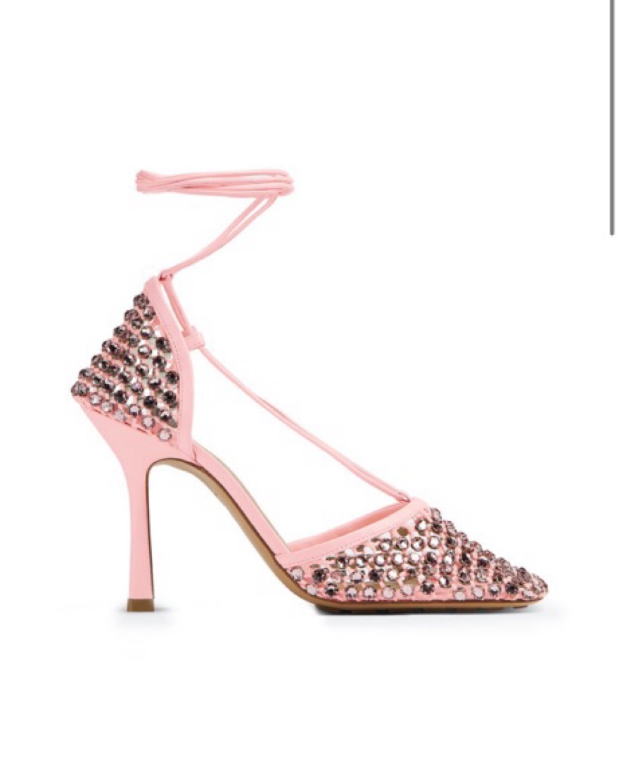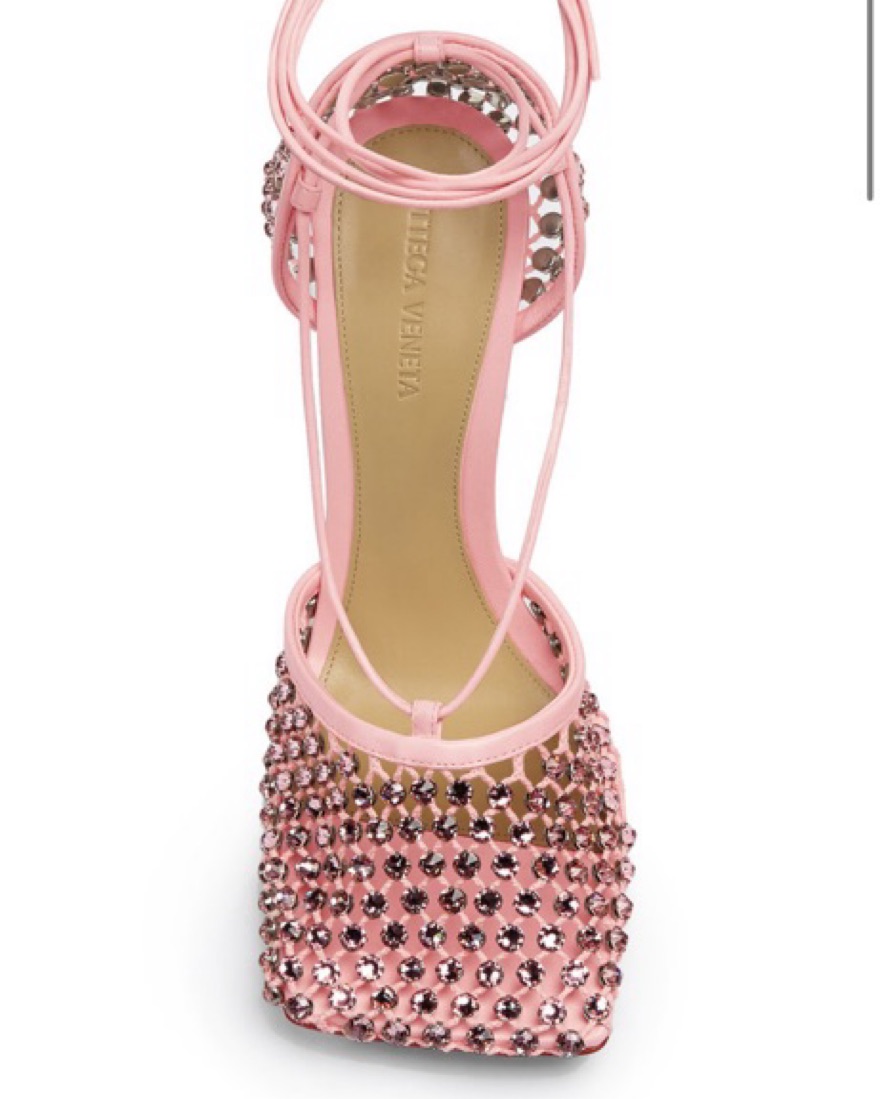 Bottega Pink Lace-Up Crystal Sandals 38