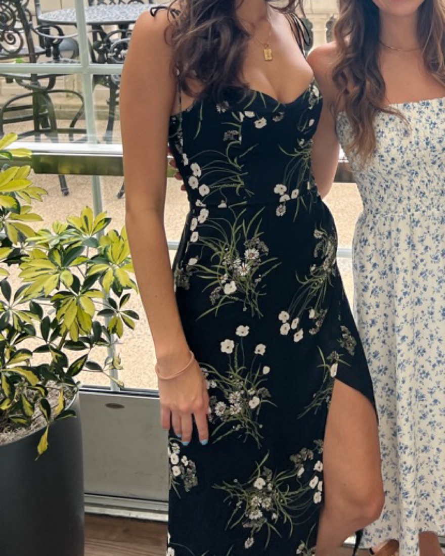 Reformation Kourtney Dress— Veuve Size 2. So beautiful and great for weddings, vacation, wineries! Sleeveless Midi Dress with sweetheart neckline and tie straps.